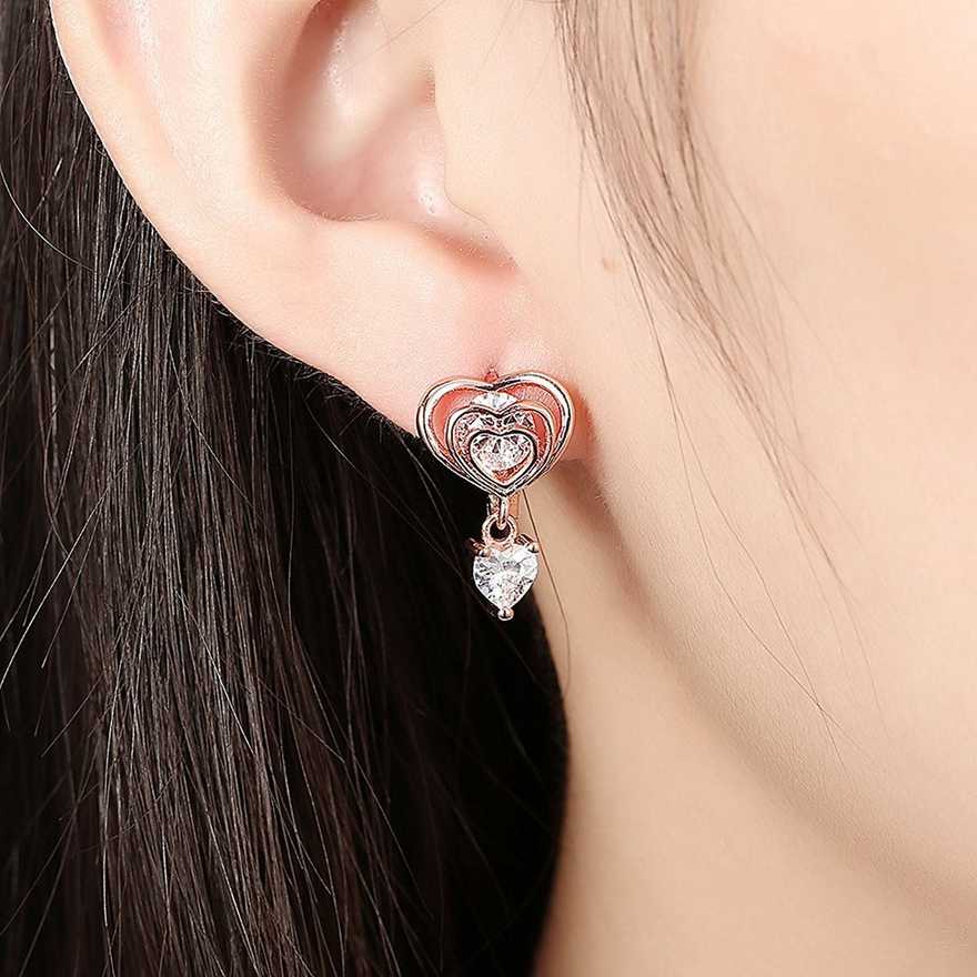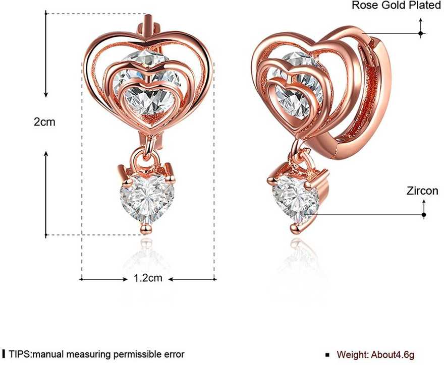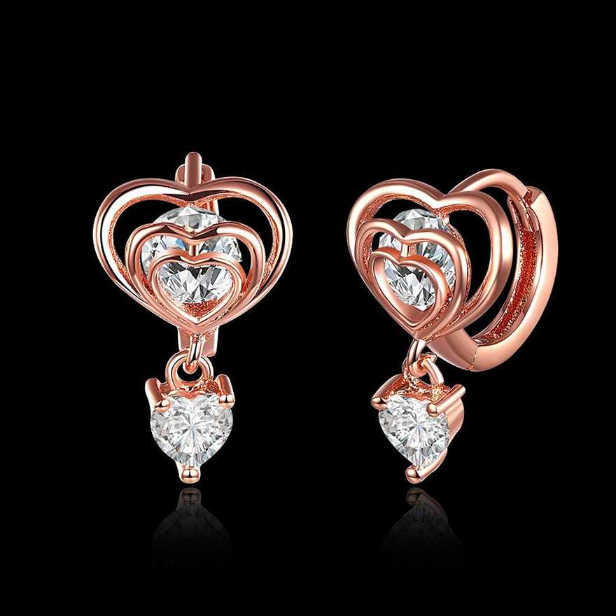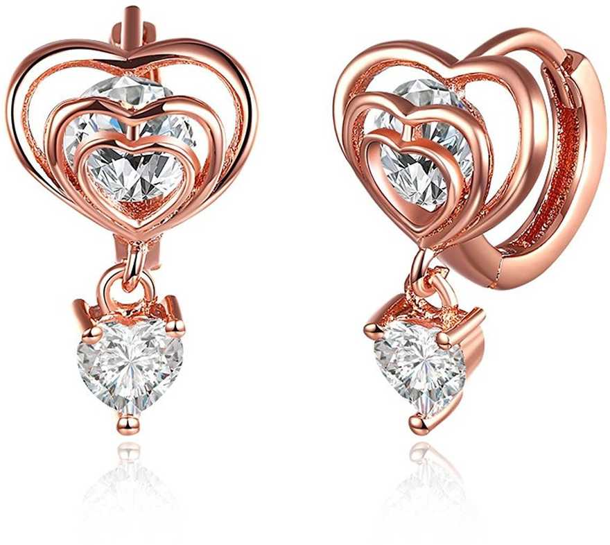 A5 Grade Crystal 18K Rose Gold Designer Heart in Heart Earrings |