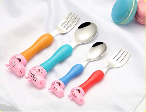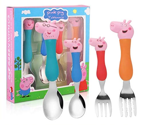 Aarti Peppa Pig Theme Stainless Steel Baby Feed Spoon and Fork Set (Multicolour)