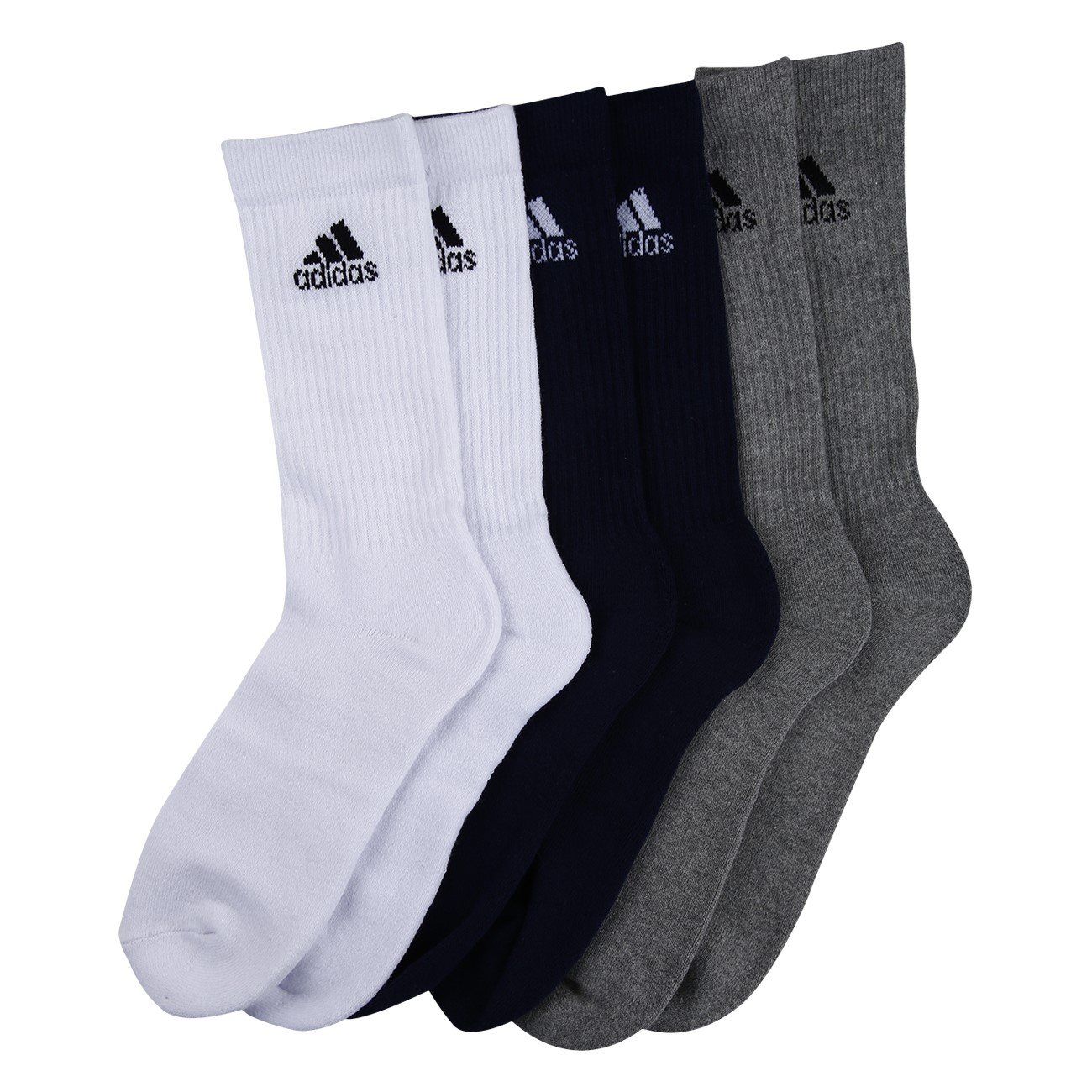 Adidas Men's Half Cushion Crew Cotton Blended Free Size Socks - Pack of 3 (Navy/Grey/White)