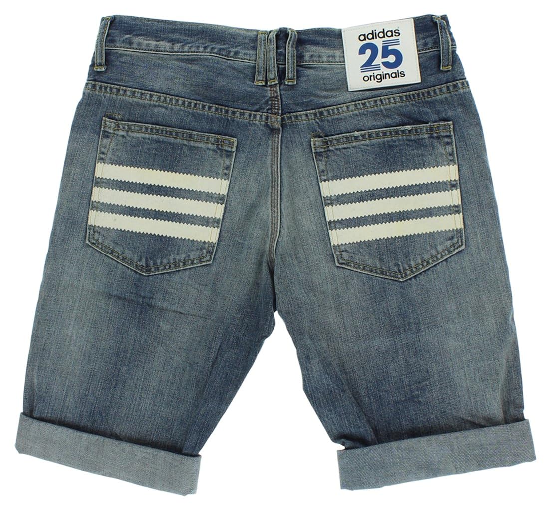 Button Fly and Belt Loops Around Waist Hem Front and Back Pockets with Inner Coin Pocket on Right Side. Warn Look with Cuffed Bottoms Three Adidas Stripes on Back Pockets. |