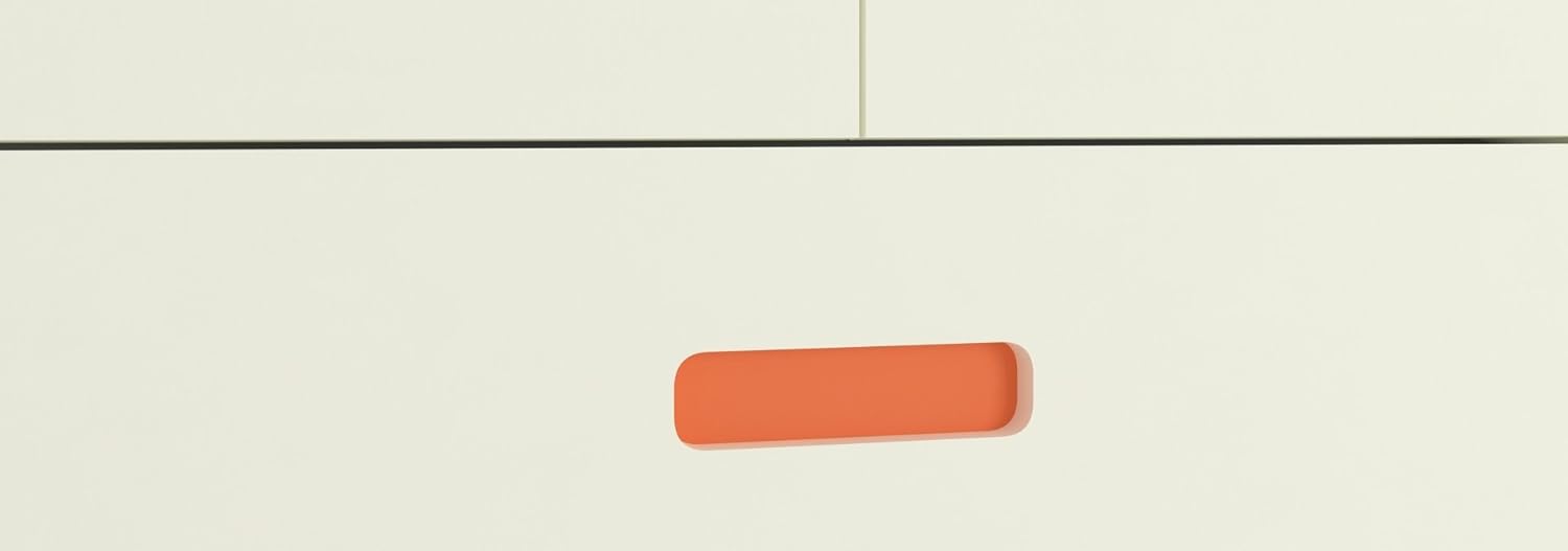 Attractive built-in recessed handles are stylish and makes drawer easy to use; colorful wooden handles for shutters look classy