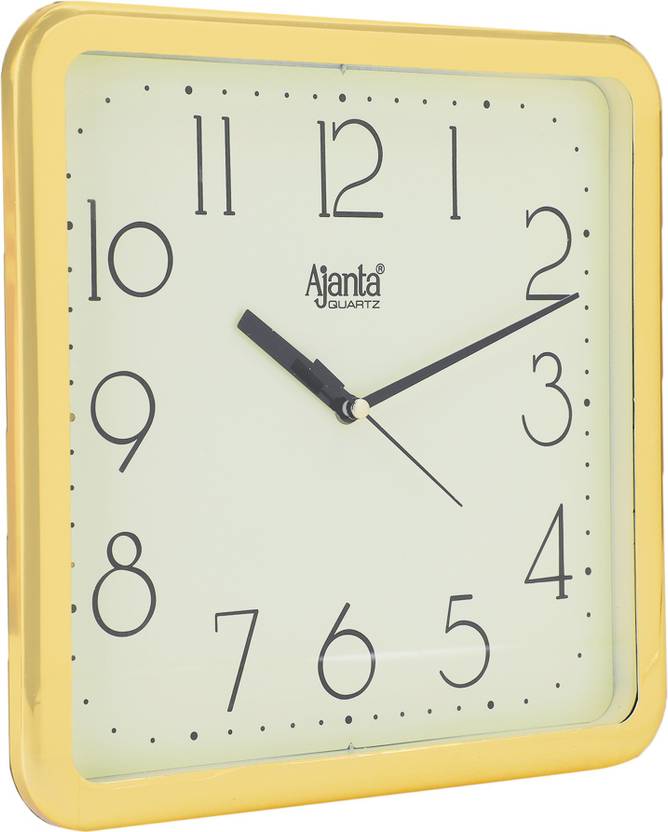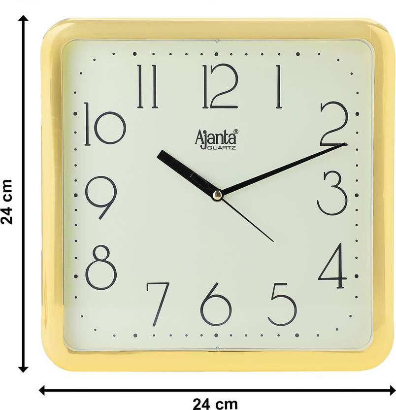 Ajanta Analog 24 cm X 24 cm Wall Clock (Gold, With Glass)