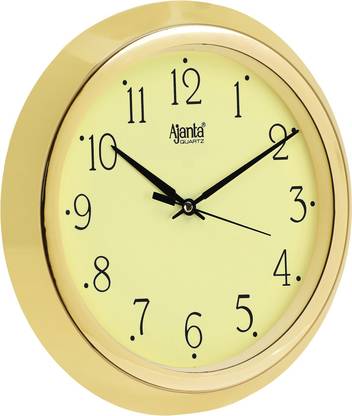 Ajanta Analog 26 cm X 26 cm Wall Clock (Gold, With Glass)