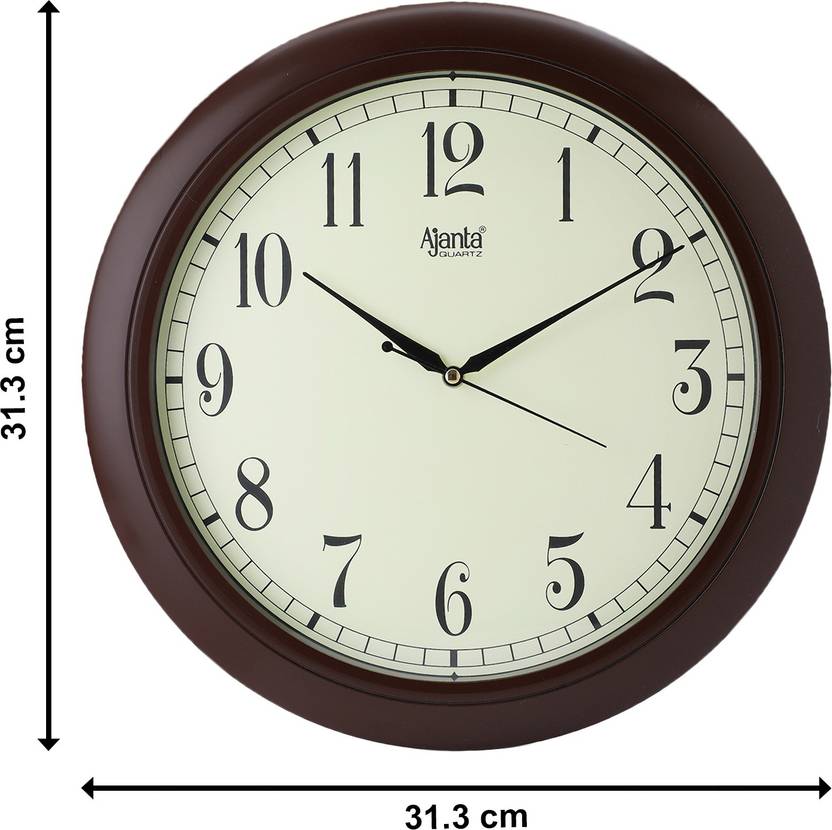 Ajanta Analog 31.3 cm X 31.3 cm Wall Clock (Brown, With Glass)