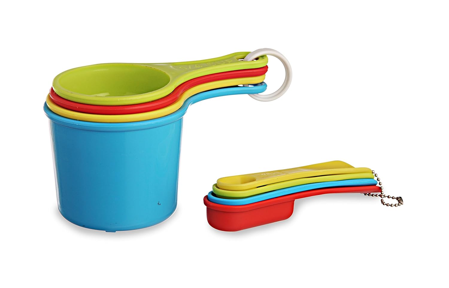 All Time Plastics Measuring Cups and Recipe Spoon Set, Multicolour