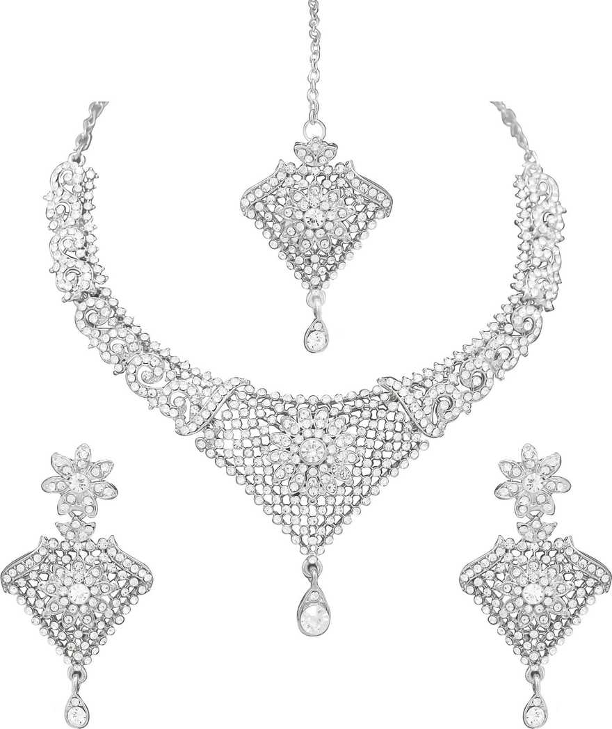 Necklace Set with Austrain Diamonds & Original Rhodium Plating; Best Suited on Party & Ethnic Wear; Ideal Gift for your loved Ones; Best Gift Type Packing |