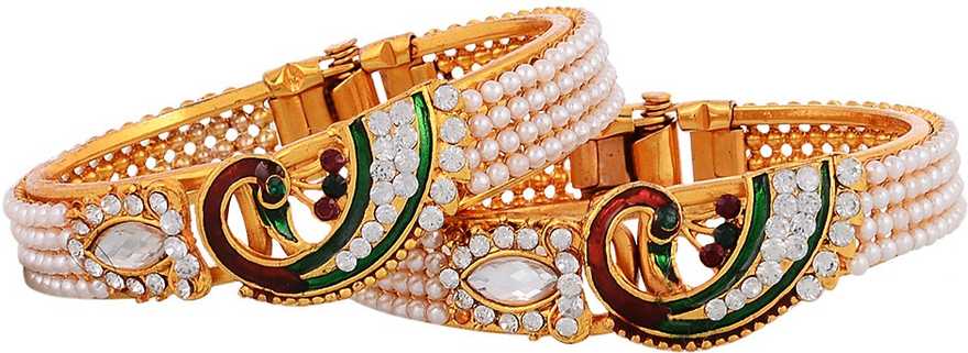Zeneme Peacock Gold Plated pearl Adjustable Kadas Set Of 2 For Women |