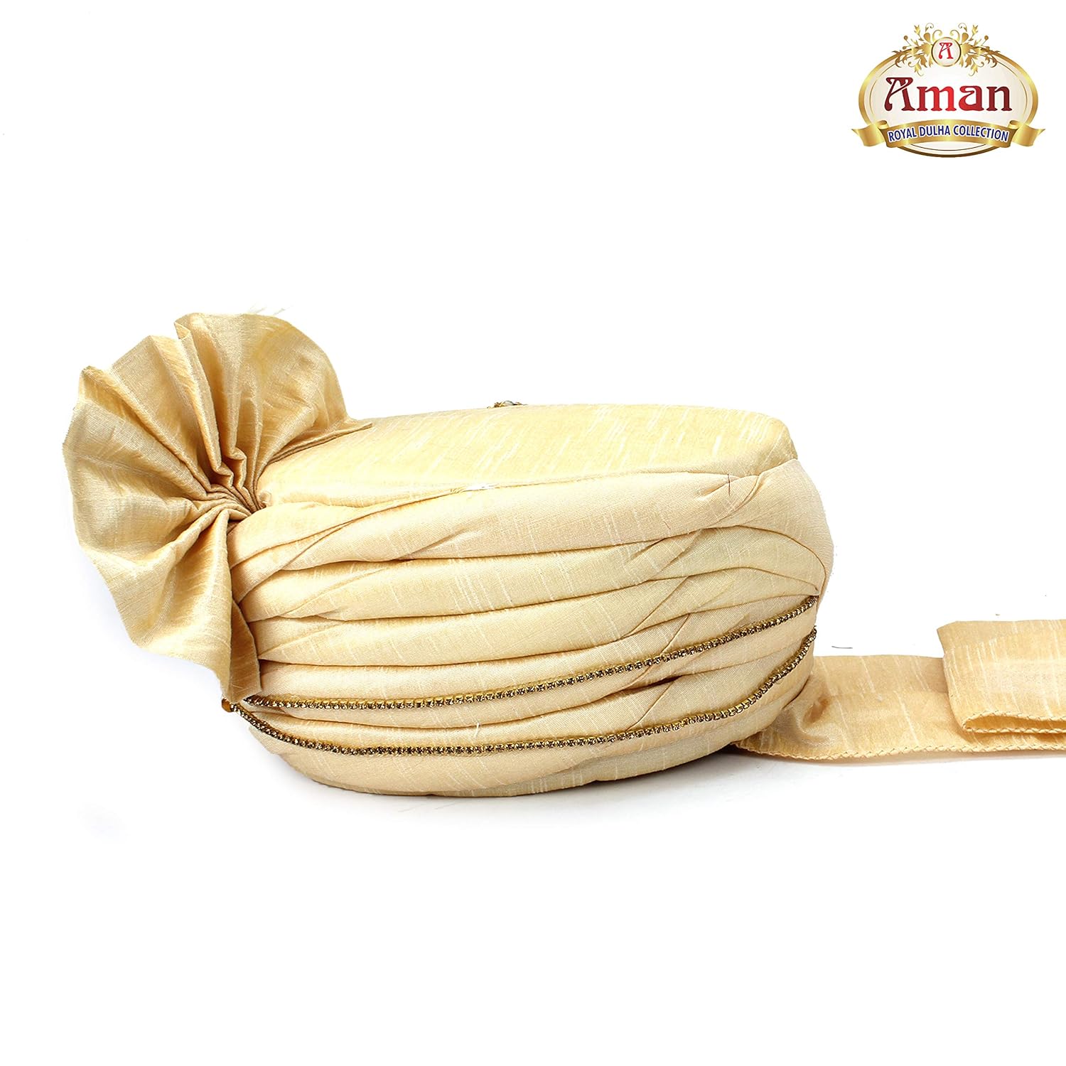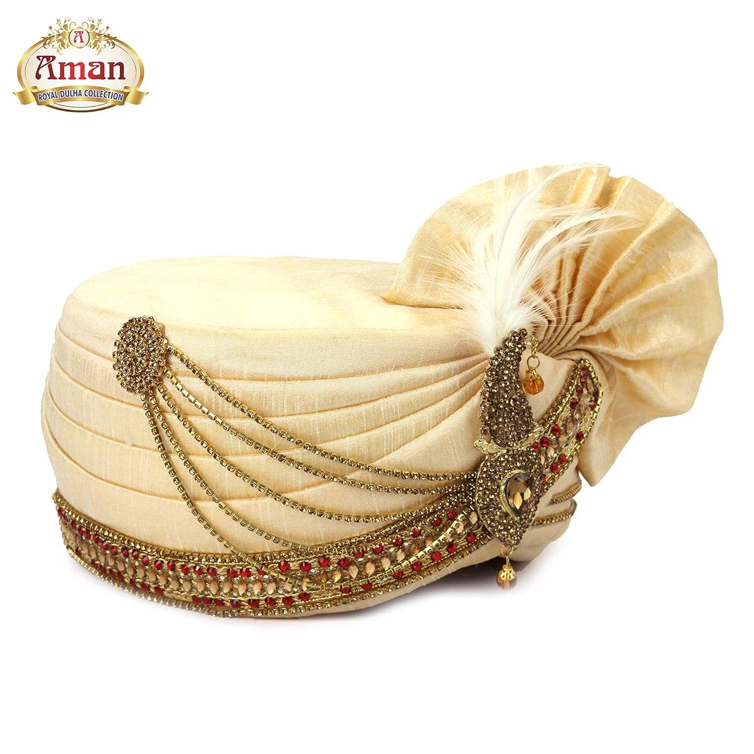 Aman Dulha Collection presents this turban which is made of Ethnic Fabric material. This elegant turban adds a classic touch to your ensembles. It is suitable to wear on ceremonial occasion. A royal Maharaj look for Indian Wedding Groom. |