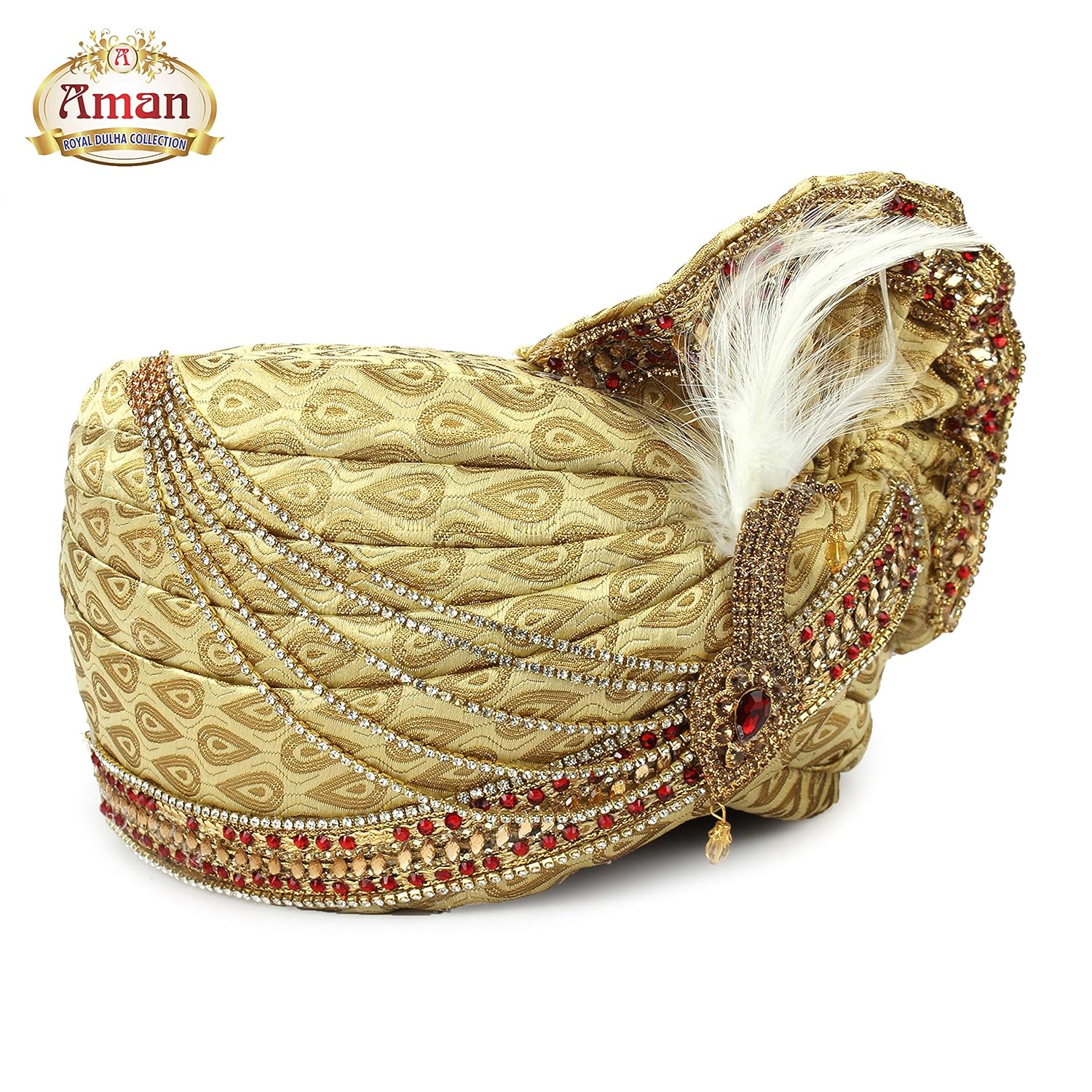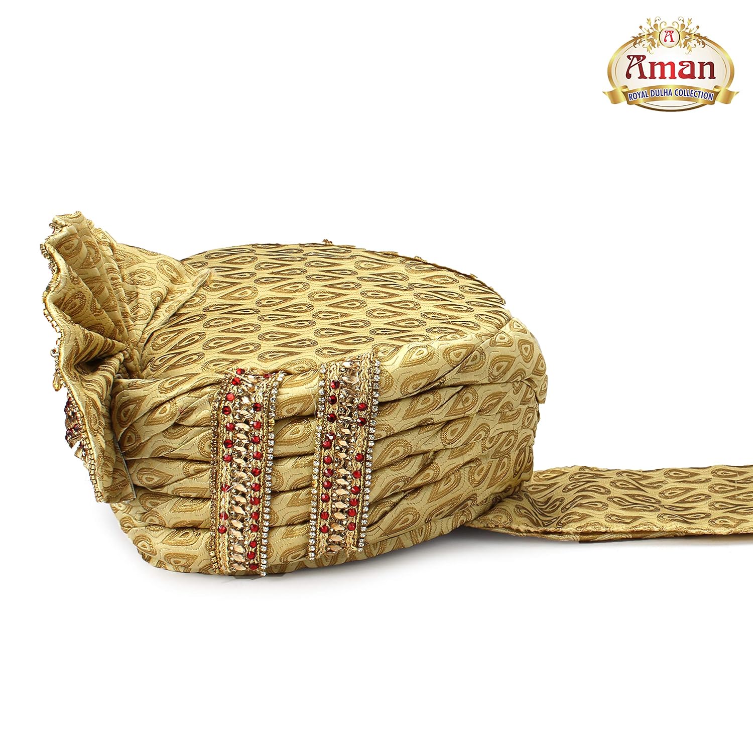 Aman Dulha Collection presents this turban which is made of Ethnic Fabric material. This elegant turban adds a classic touch to your ensembles. It is suitable to wear on ceremonial occasion. A royal Maharaj look for Indian Wedding Groom. |