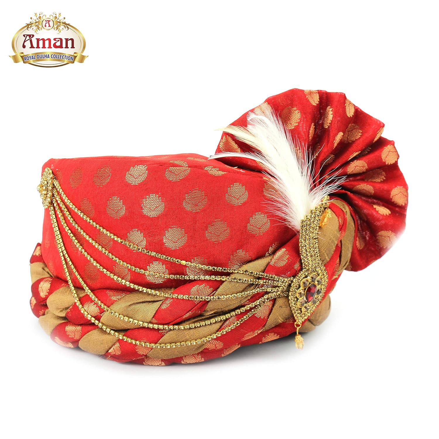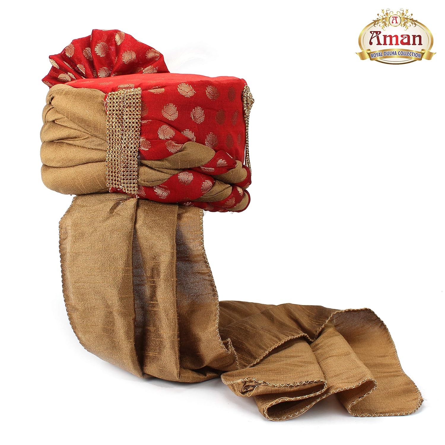 Aman Dulha Collection presents this turban which is made of Ethnic Fabric material. This elegant turban adds a classic touch to your ensembles. It is suitable to wear on ceremonial occasion. A royal Maharaja look for Indian Wedding Groom. |