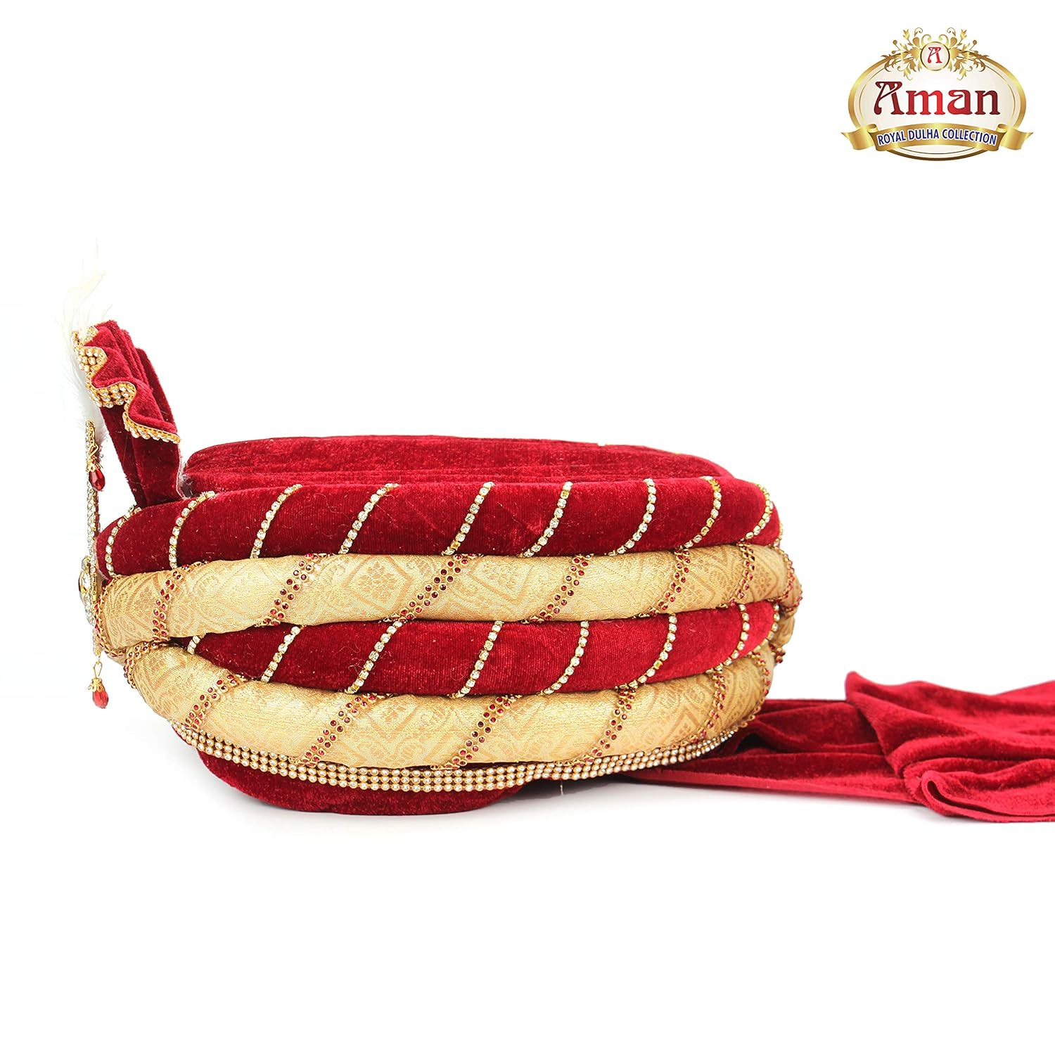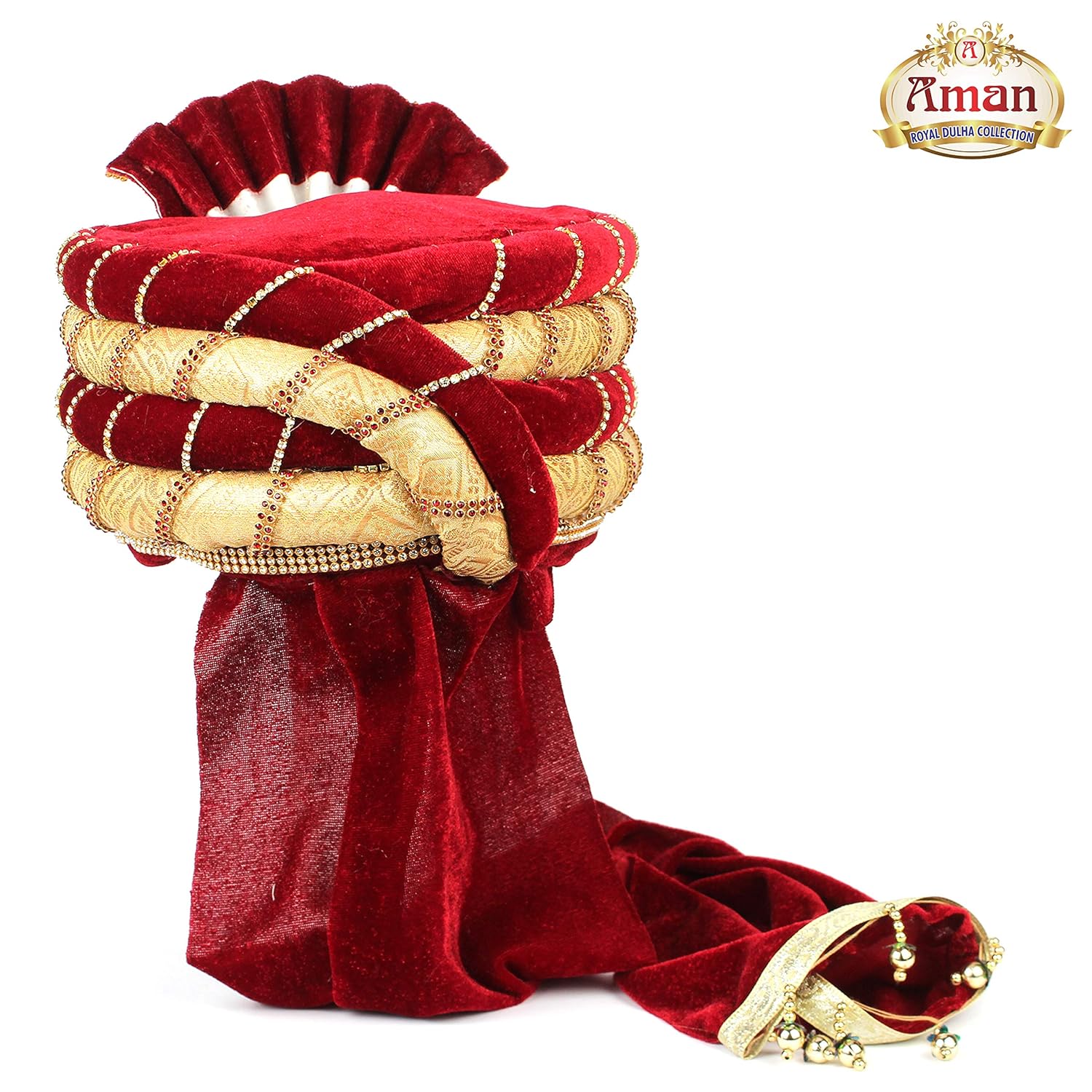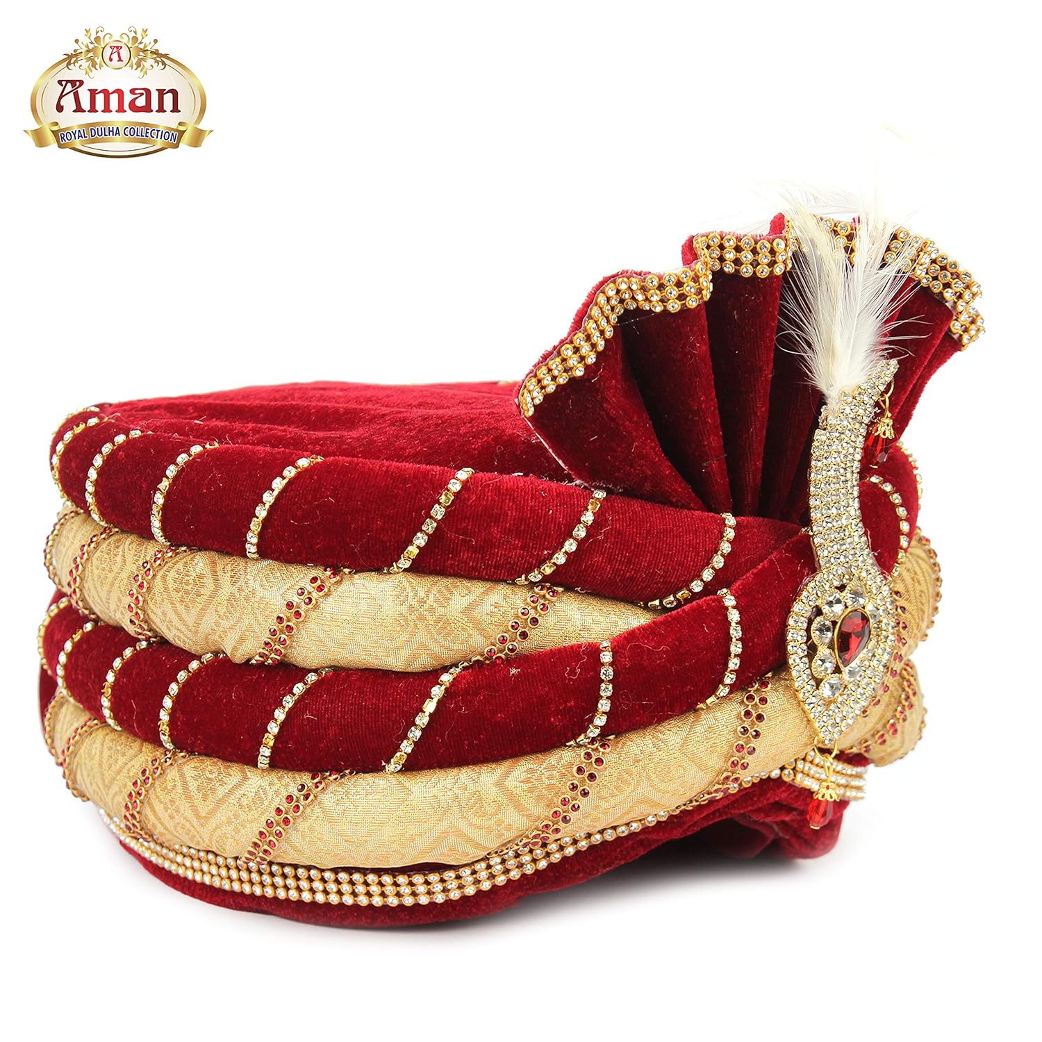 Aman Dulha Collection presents this turban which is made of velvet material. This elegant turban adds a classic touch to your ensembles. It is suitable to wear on ceremonial occasion. A royal Maharaja look for Indian Wedding Groom |