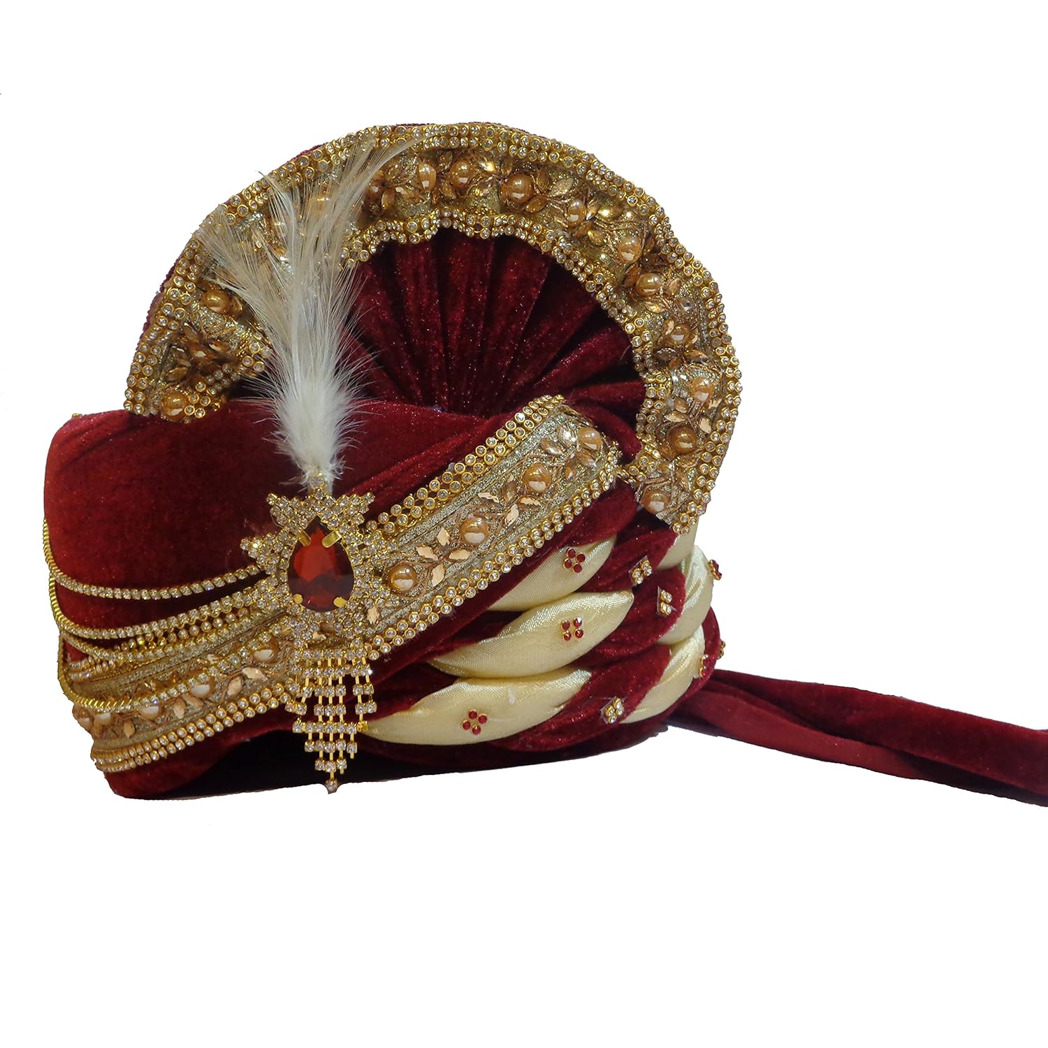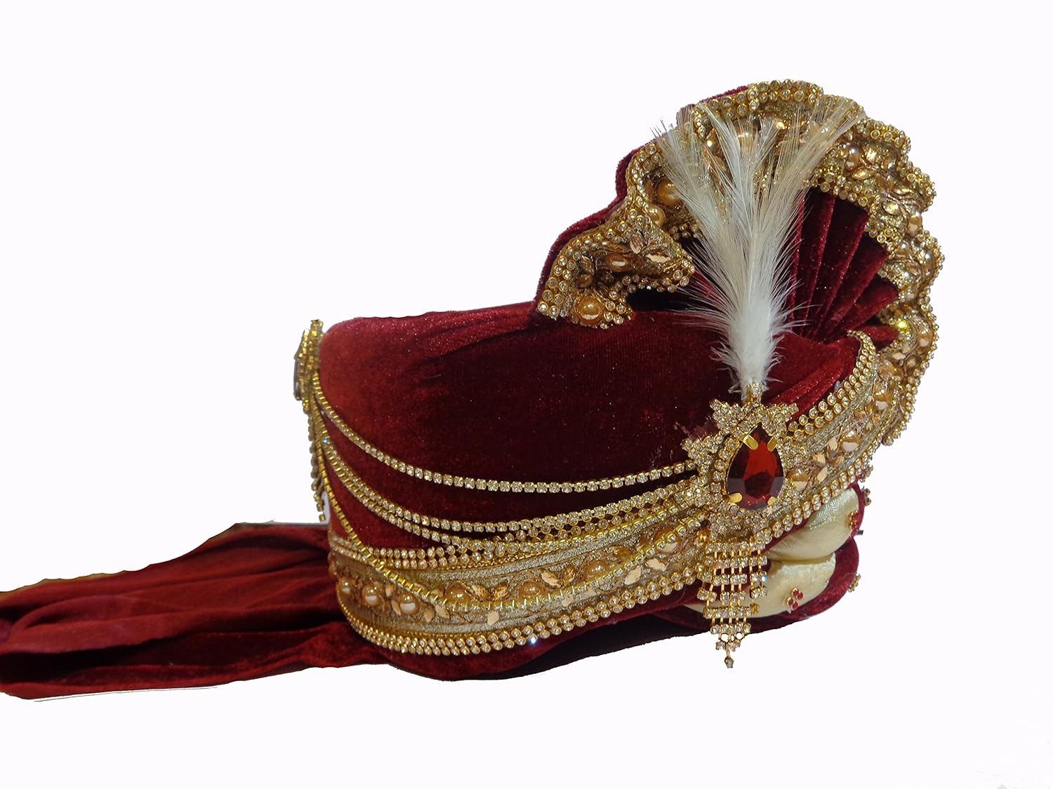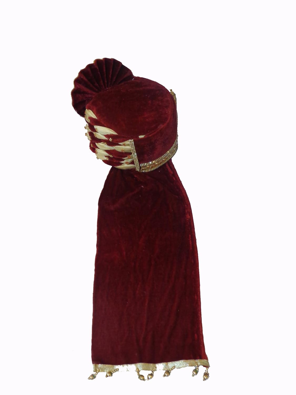 Aman Dulha Collection presents this turban which is made of velvet material. This elegant turban adds a classic touch to your ensembles. It is suitable to wear on ceremonial occasion. A royal Maharaj look for Indian Wedding Groom |