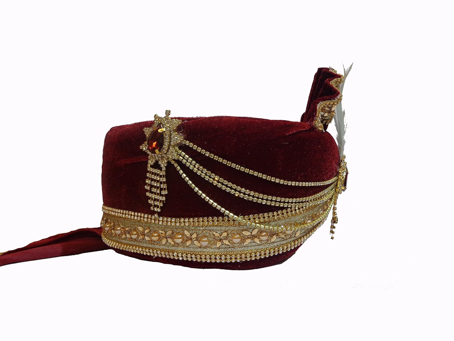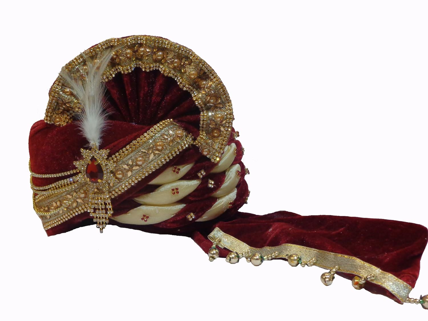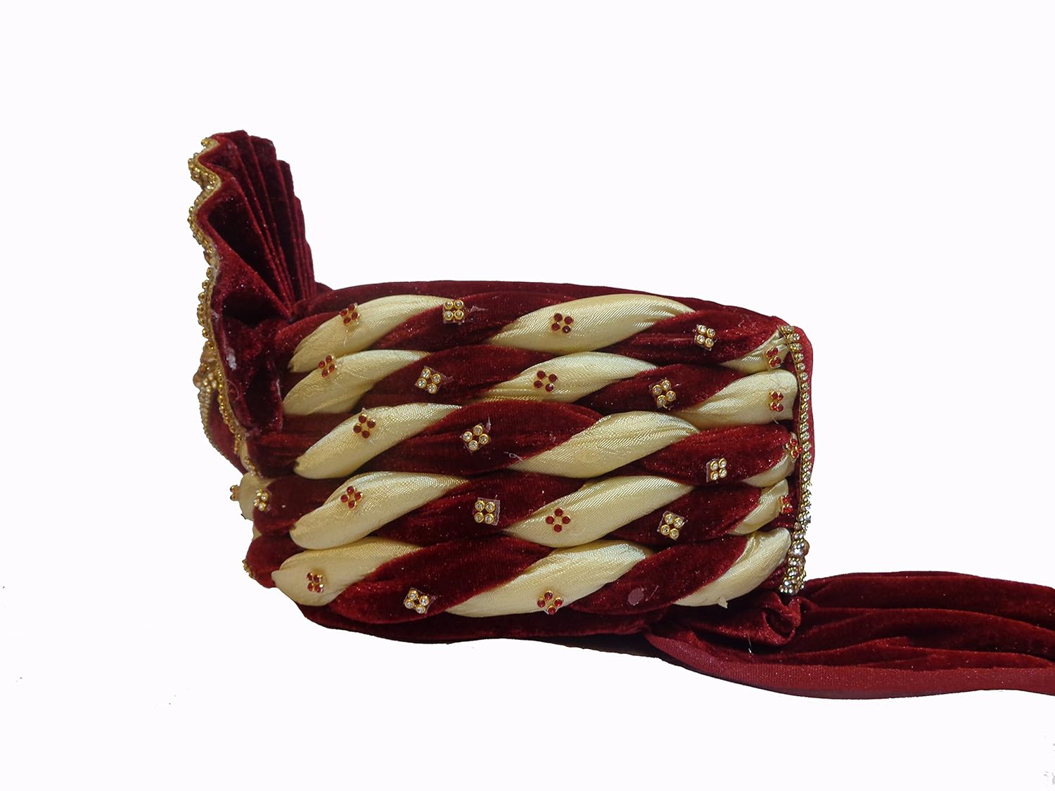 Aman Dulha Collection presents this turban which is made of velvet material. This elegant turban adds a classic touch to your ensembles. It is suitable to wear on ceremonial occasion. A royal Maharaj look for Indian Wedding Groom |