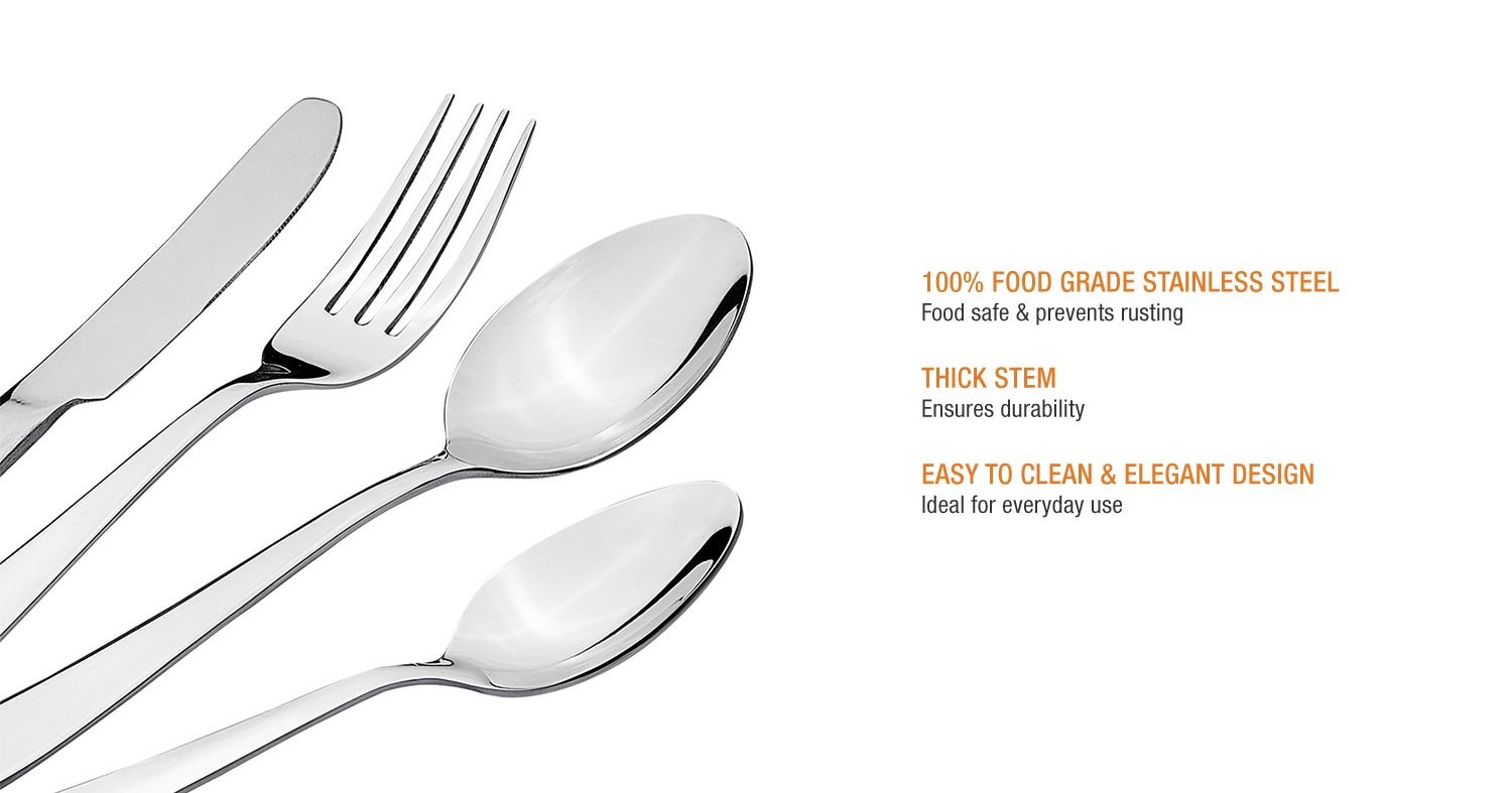 Amazon Brand - Solimo 24 Piece Stainless Steel Cutlery Set, Vintage (Contains: 6 Table Spoons, 6 Tea Spoons, 6 Forks, 6 Knives), Silver