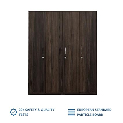 Four doors for compartmentalisation and multiple shelves, drawer for organisation of clothes,