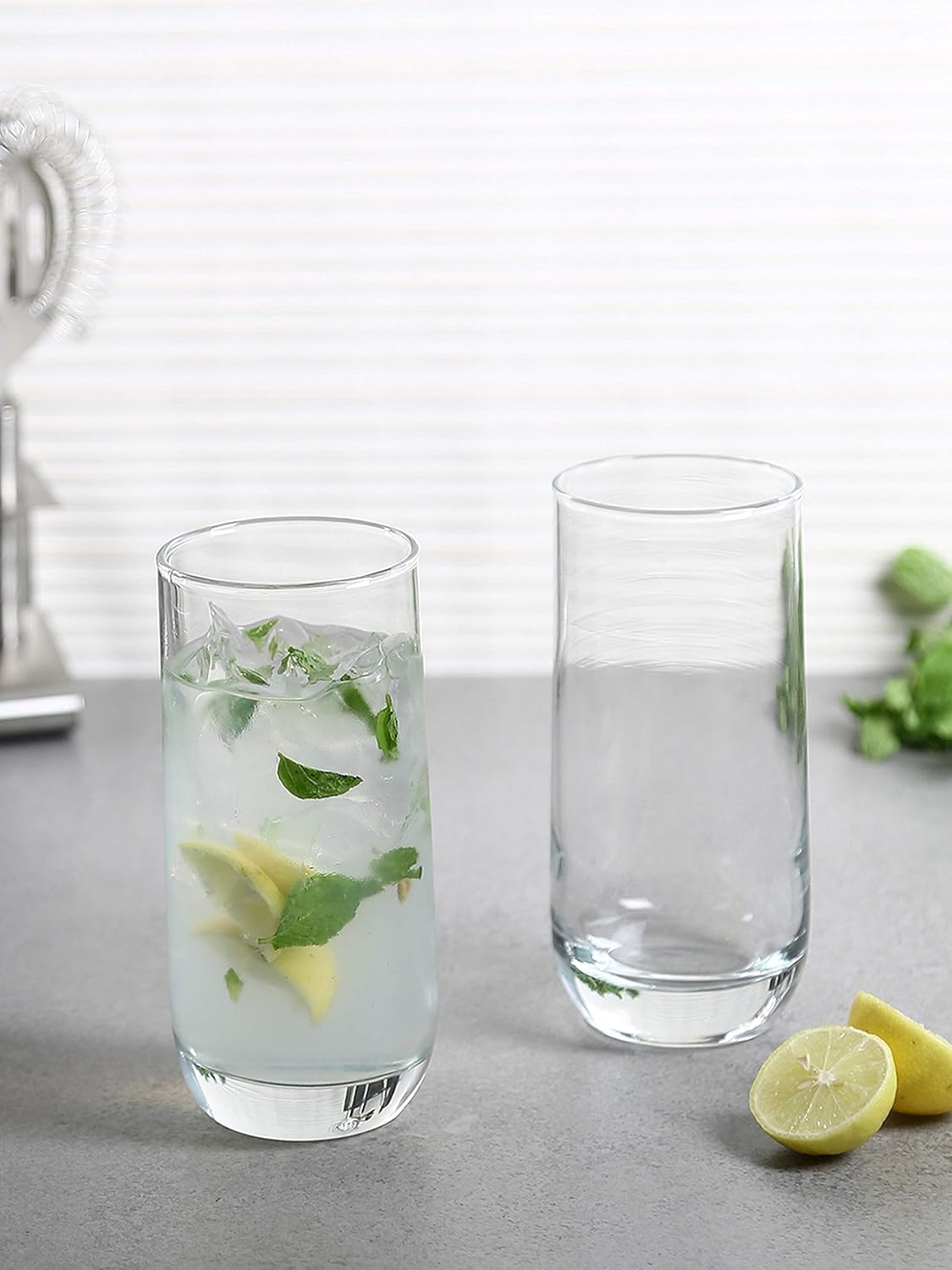 Amazon Brand - Solimo Anya High Ball Glass Set, 360ml, Set of 6, Transparent