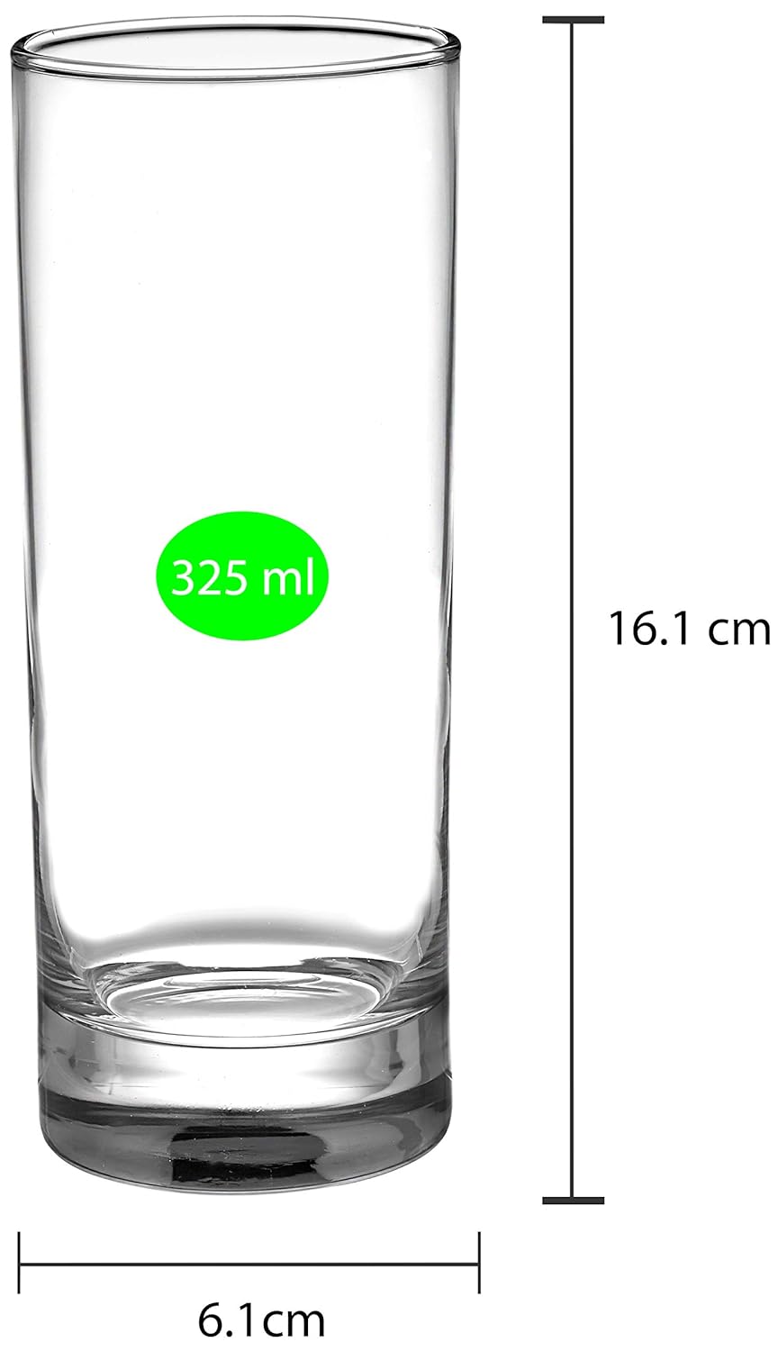 Amazon Brand - Solimo Nia High Ball Glass Set, 325ml, Set of 6, Transparent