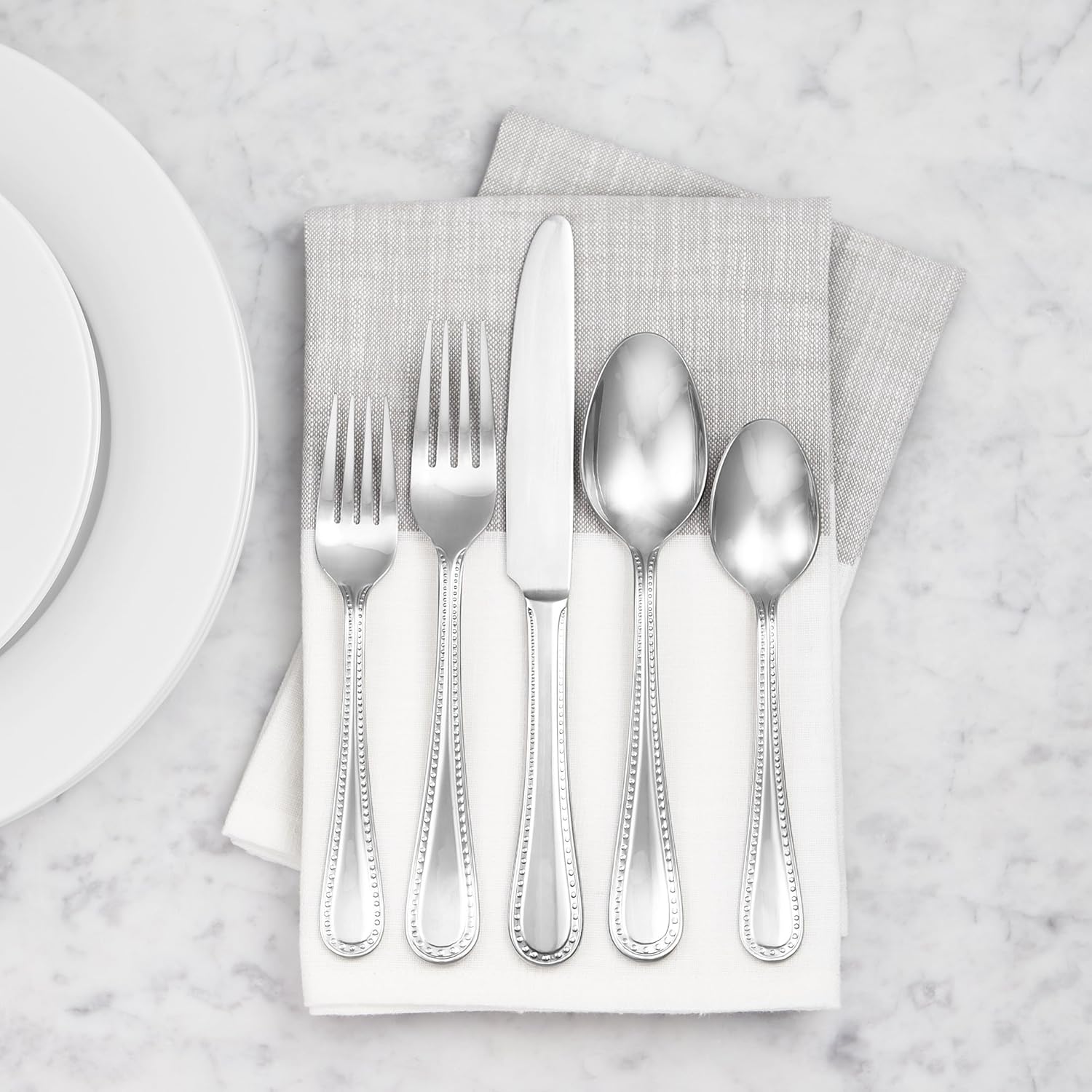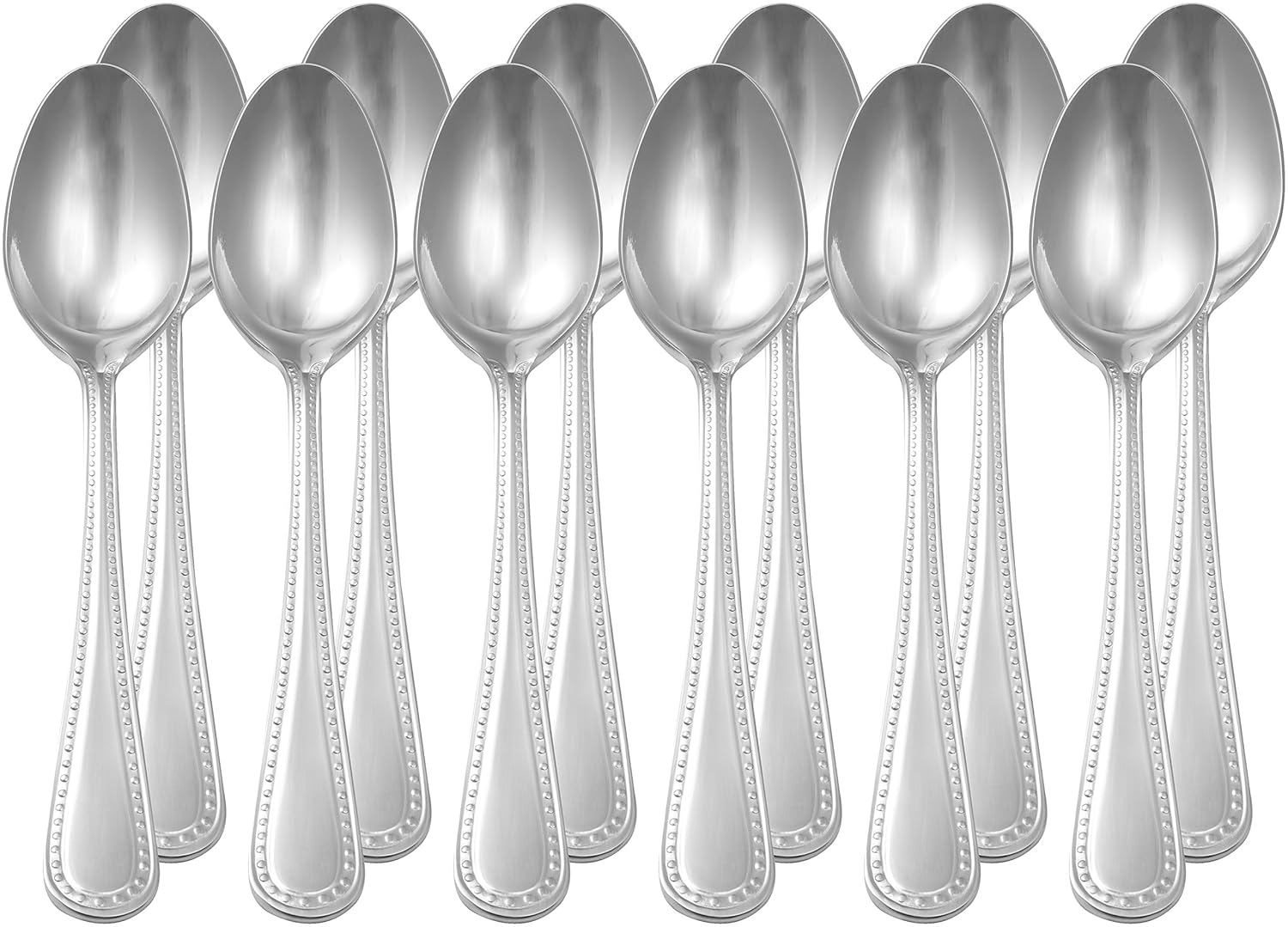 AmazonBasics Stainless Steel Dinner Spoons with Pearled Edge, Set of 12