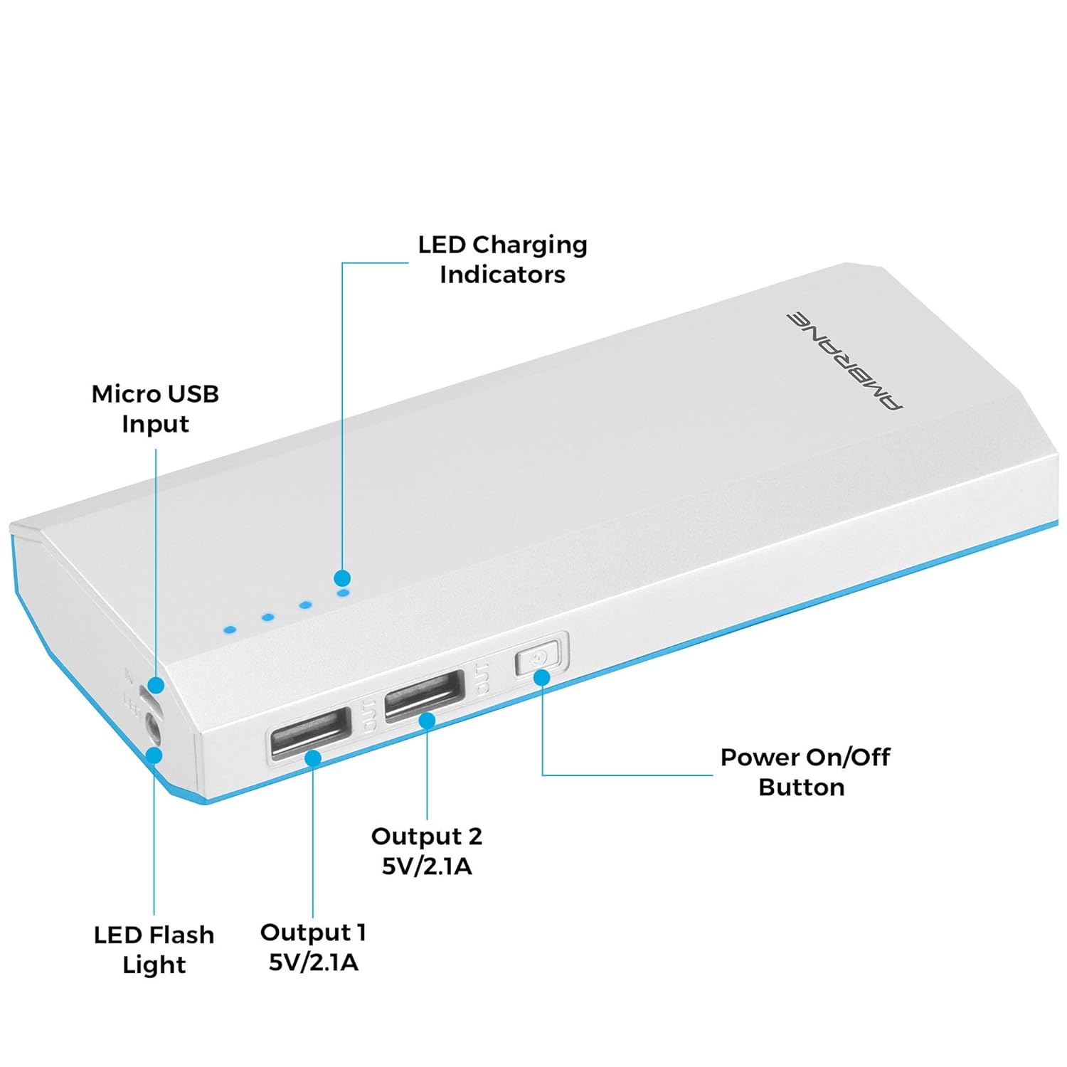 Necessity of smart phones and tablet in our daily lives raise the commotion for power banks. This utility which is required in our daily lives is fulfilled by the Ambrane Power Bank P-1111. Its exquisite design available in two different colour in which one of them in Turquoise Blue and other one in Jet Black. P-1111 is competent with dual output charging port, so that one can charge two of their devices at the same time. Elongated octagonal shape of P-1111 allures you to boast it in social gatherings. P-1111 having charging capacity of 10000 mAh makes your device always charged and keep you connected. Design and build- P-1111 is one of the Ambrane Power bank, designed to fulfil necessity of the portable charging for smart-phones, i-phones and tablets. Its elongated octagonal design with turquoise blue and jet black colour makes it exquisite.