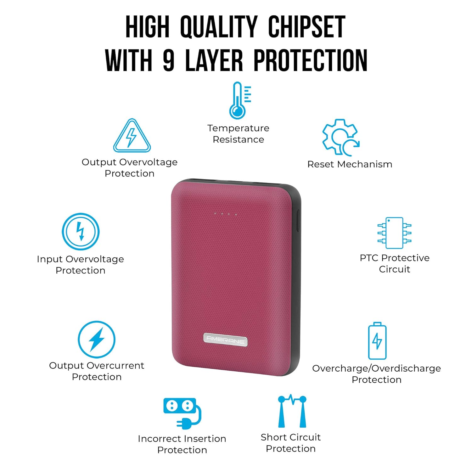 It has Lithium Polymer Battery which optimises the charging efficiency makes it more durable and safe. It takes only 6-8 hours charging to its full capacity and can fully charge your devices like iPhone X 2 Times , MI A2 1.6 Times, Samsung Galaxy J7 2.16 Times at its full capacity