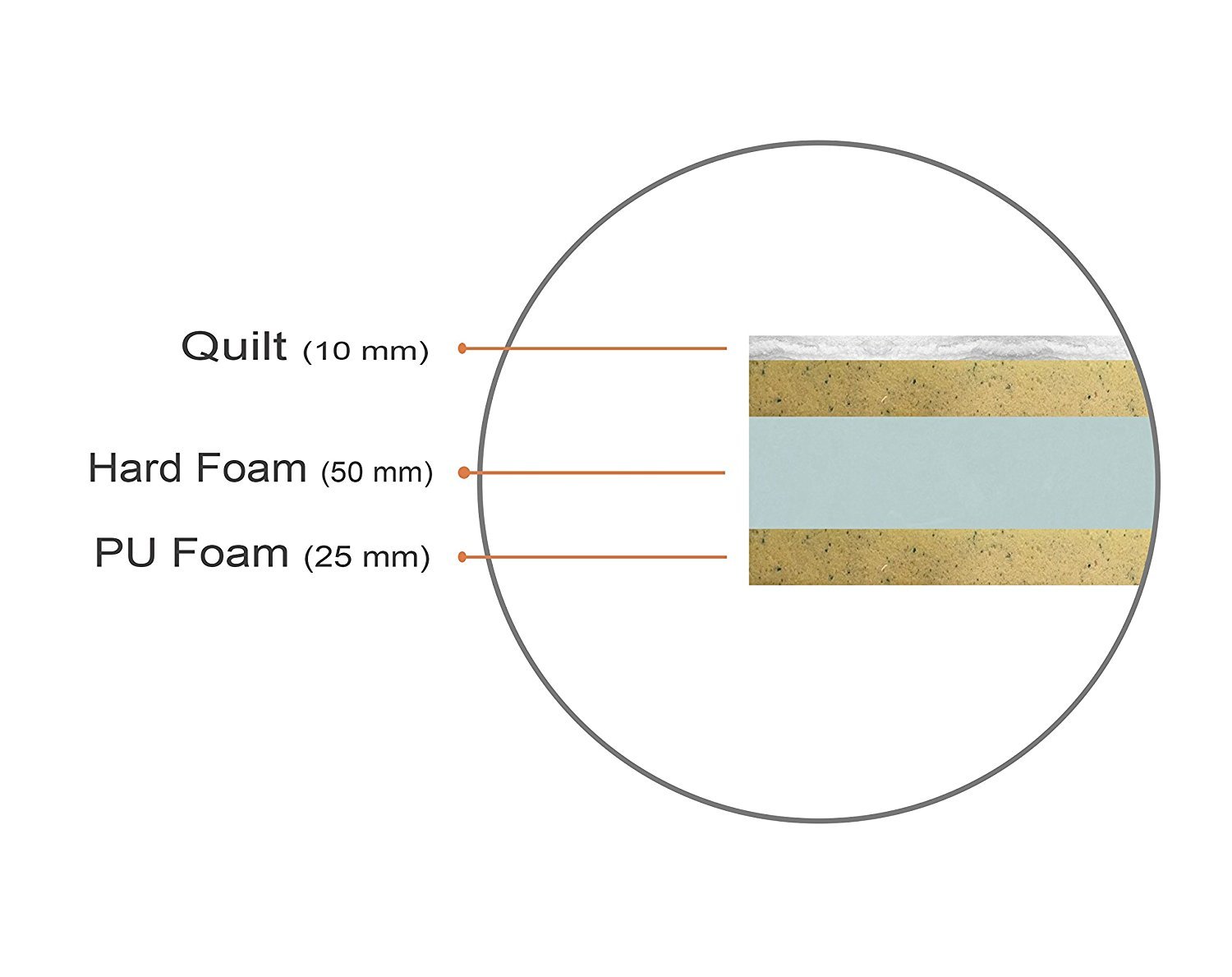 Material : Bottom - High Density Foam (3 inches), Top - Soft Premium quality foam (1 inches)