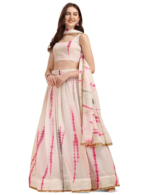 Package Contains: 1 Semi-Stitched Lehenga with Dupatta and Unstitched Blouse; Wash Care: Dry Clean Only