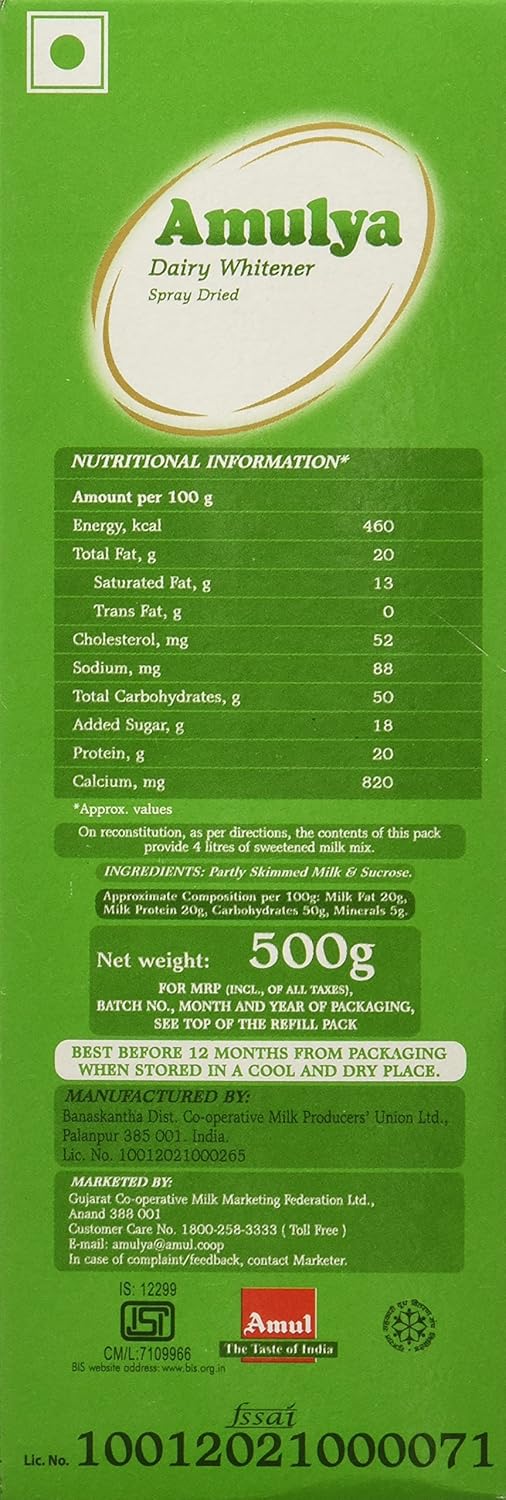 Amulya Dairy Whitener, 500g Carton