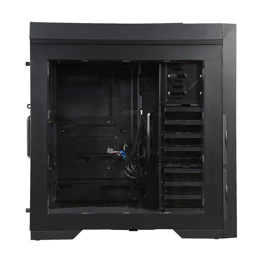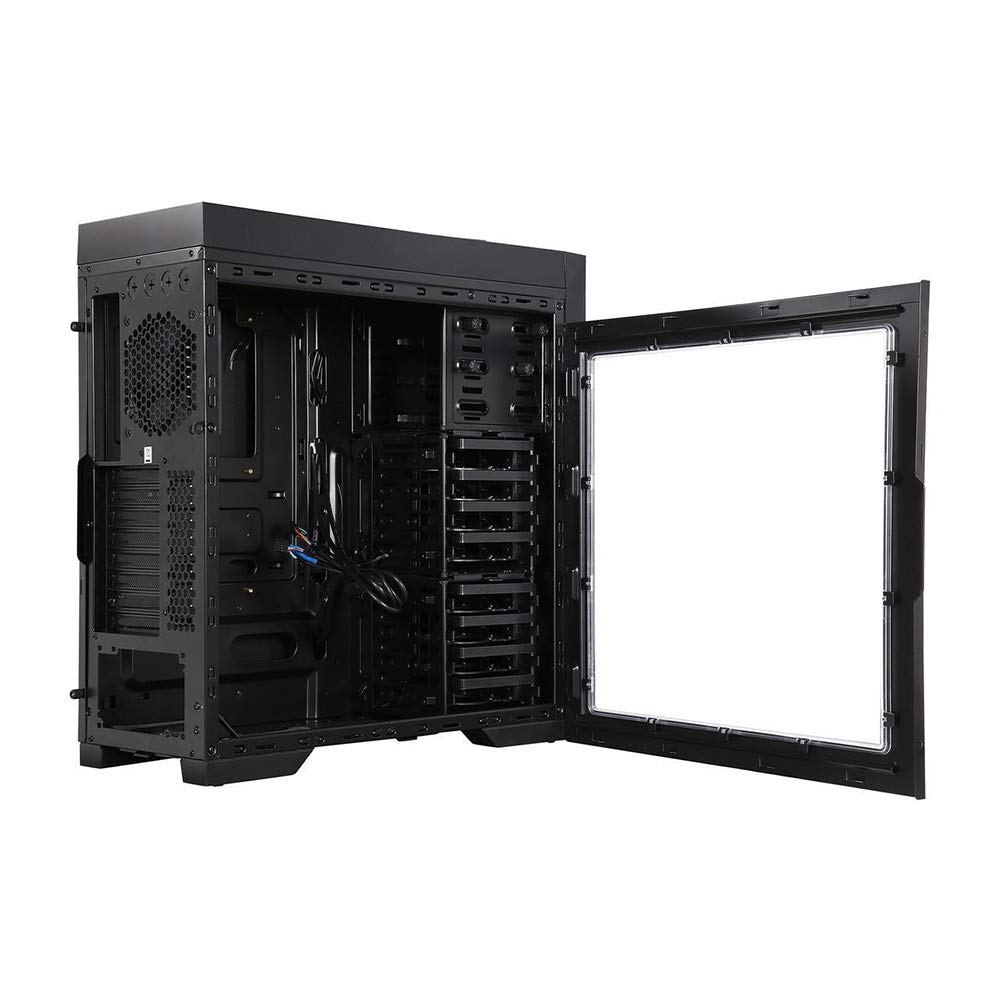 The P9 Window mid-tower gaming case has the space to house your high-end components--and cool them quietly. Eight tool-less 3.5” drive bays are each compatible with 2.5” SSD, and we’ve included two dedicated SSD mounts behind the motherboard for ultimate expandability. The modular HDD cages can be removed to accommodate graphics cards up to 16.9”/ 430 mm, while noise-dampening side and top panels make sure that only your system’s performance speaks for itself. Both top and bottom drive cages can be removed to make space for a reservoir for your custom liquid cooling setup, and the included pump bracket and adjustable mount make it easy for you to position your liquid coolers just about wherever you want to. Mounting points for a 240 mm in the front and up to a 240/280 mm radiator on top mean you’re ready to take charge of your cooling system. Keeping your components dust free is key to a long lasting system. Washable air filters for front intake fans, the PSU compartment, and the bottom of the chassis slide out for easy access. Focus more on your game and less on cable management. The included stealth cable ties, cable routing holes, and ample space behind the motherboard result in a clean, powerful build that you’ll be proud to show off through the windowed side panel. Top power/reset buttons conveniently located on the top panel give you full control of your system. Use the two fan control switches to toggle between silence and performance with ease, while the two USB 3.0 ports give fast data transfer speeds up to 5 gbps. |