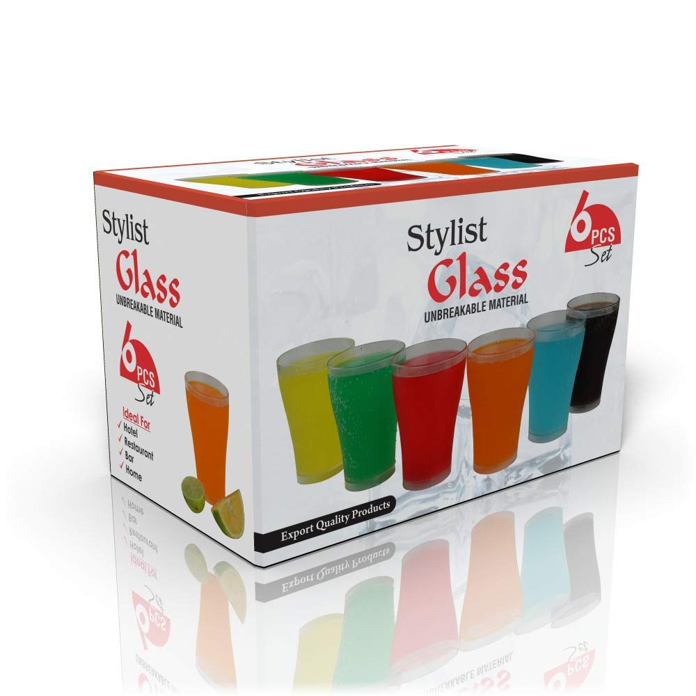 Apex Plastic Unbreakable Stylish Glass Set, Set of 6, Transparent