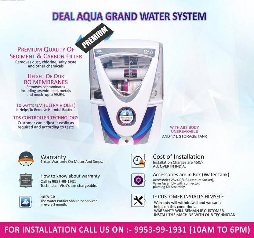 Most trusted and largest selling RO water purifier with a transparent design that shows off AQUAGRAND patented Mineral RO technology and an inbuilt TDS controller. Best suited for Indian homes and offices and suitable for purification of brackish/tap water/municipal corporation water supply