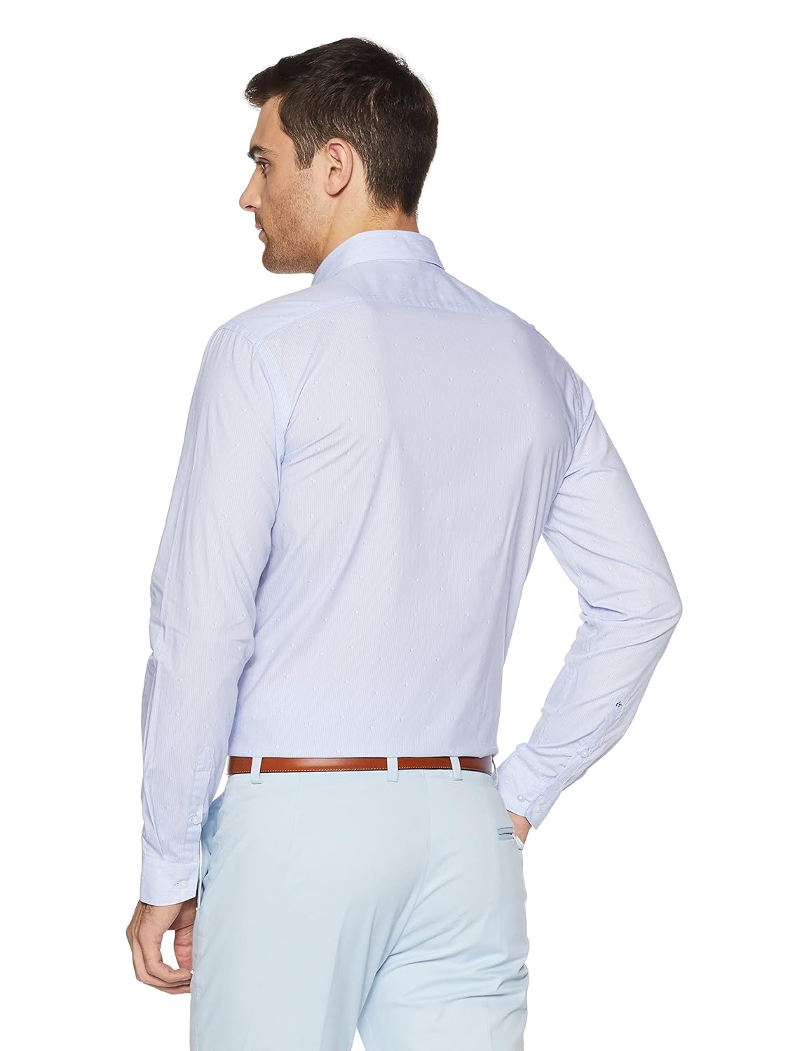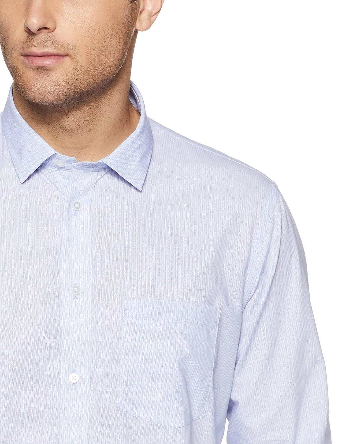 Men's blue colored formal shirt by arrow, it's a full sleeve shirt with slim fit and printed design.