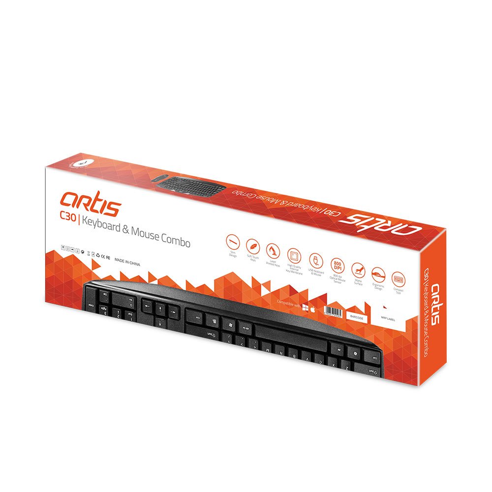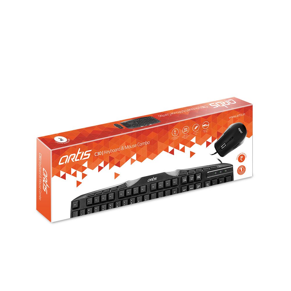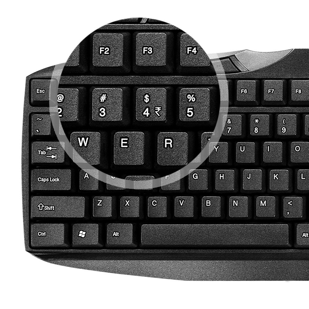 USB Multimedia keyboard and USB Optical Mouse combo. Slim Design, Soft Touch Keys, Laser Printed Keys, Full-size keyboard, Comfortable and Quiet typing. High Quality Internal Key Membrane and Compact dimensions. Matte Surface, Ergonomic Design, 800 dpi optical mouse sensor. Rupee Symbol key, Instant media and internet access, 10 Shortcut Keys. |