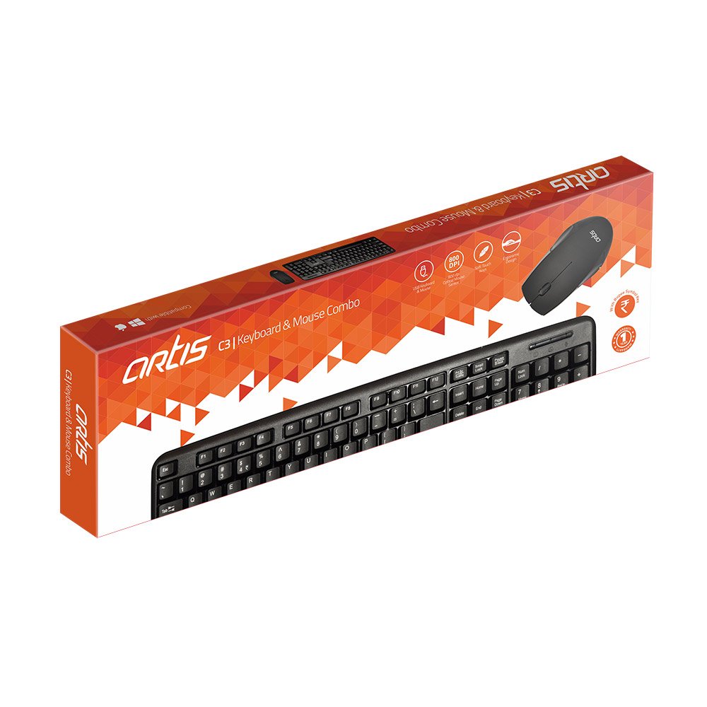 USB Wired Keyboard and USB Optical Mouse combo. Slim Design, Soft Touch Keys, Laser Printed Keys, Full-size keyboard, Comfortable and Quiet typing. High Quality Internal Key Membrane and Compact dimensions. Matte Surface, Ergonomic Design, 800 dpi optical mouse sensor. Rupee Symbol key. |