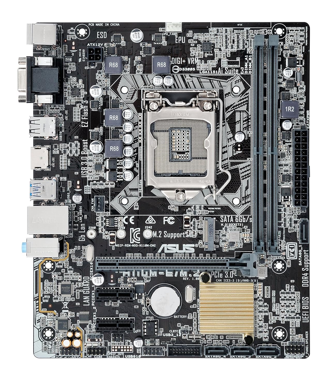 Supporting 6th Gen Intel processors and including a host of easy DIY & 5x protection features plus gaming-grade integrated audio, H110M-E/M.2 is a no-fuss motherboard that includes an M.2 slot for 2242/2260/2280 length SSDs, perfect for everything from first-time gaming builds to large-scale projects for corporations. |