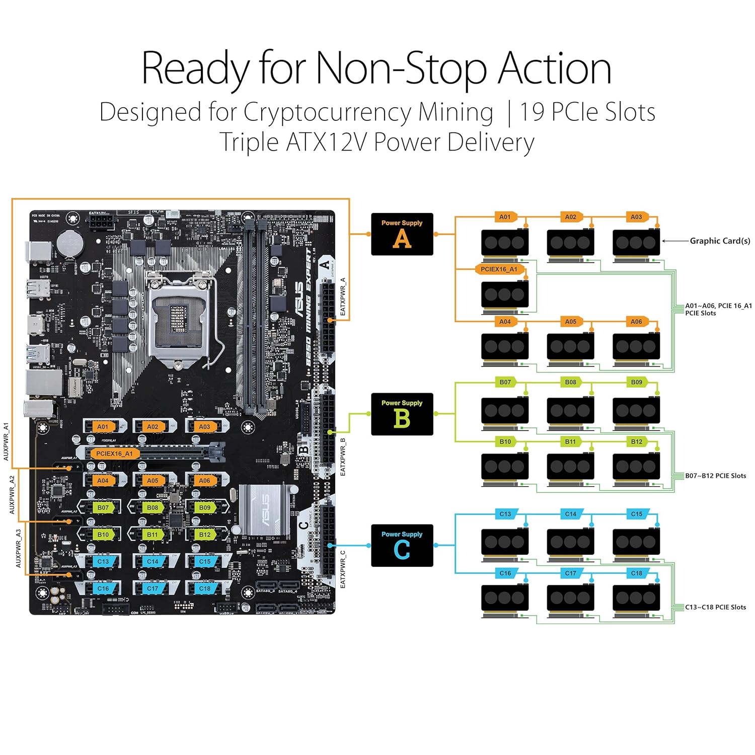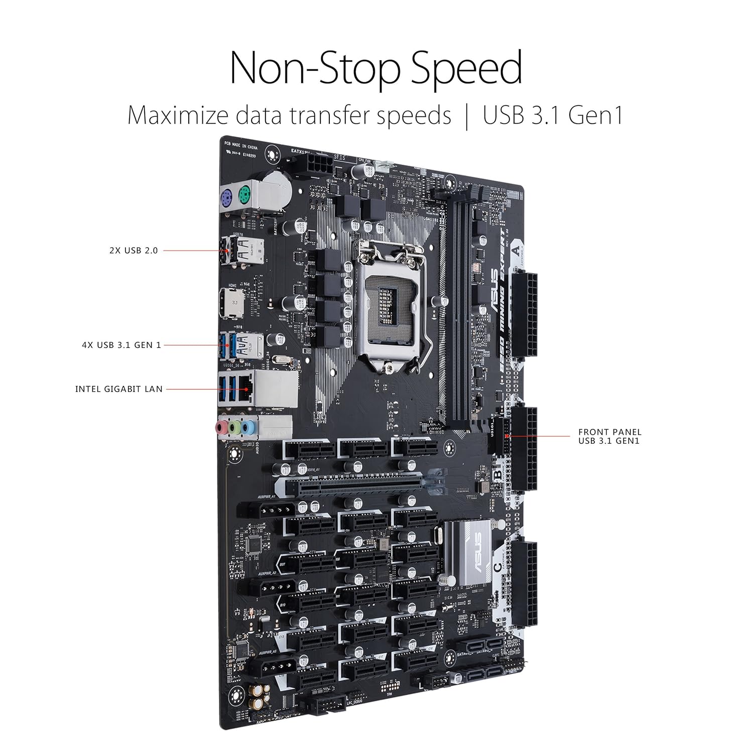 Specifications Mfr Part Number: B250 MINING EXPERT CPU: LGA1151 Supports the 7th/ 6th Generation Intel Core i7/ i5/ i3/ Pentium/ Celeron Processors Chipset: Intel B250 Memory:  2x DDR4 DIMM Slots, Dual Channel, Max Capacity of 32GB Slots:  1x PCI-Express x16 Slot, 18x PCI-Express x1 Slots SATA:  4x SATA3 Ports Audio: Realtek ALC887 8-Channel Audio CODEC LAN: Intel I219V Ethernet Controller Ports: 6x USB 3.1 Ports, 4x USB 2.0 Ports, 1x HDMI Port, 1x RJ45 LAN Port Power Connector: N/A Form Factor: ATX, 12.0 x 9.1 inch / 30.5 x 23.1 cm |