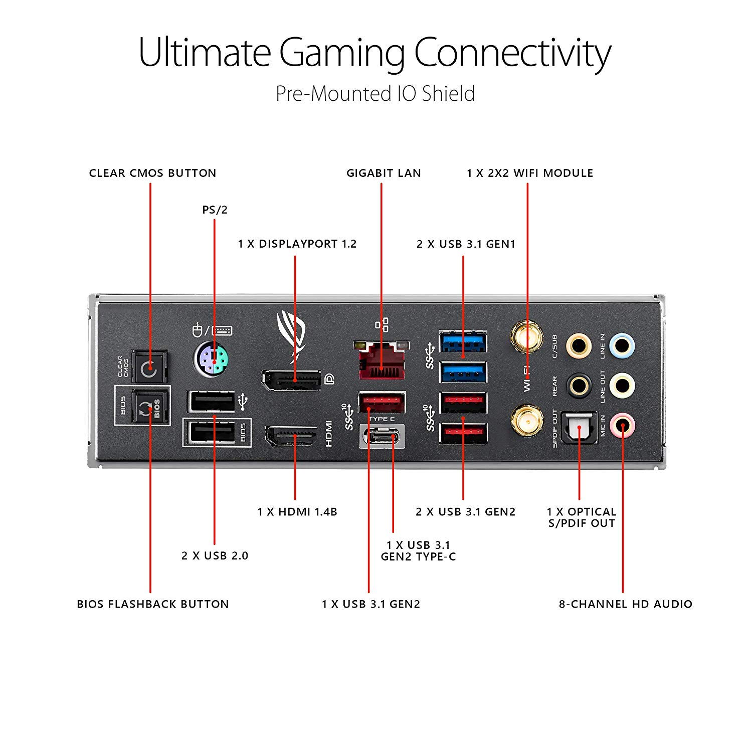 Pre-mounted I/O shield ensures streamlined installation and represents ROG's attention to detailAura Sync RGB lighting with addressable headers features a nearly endless spectrum of colors with the ability to synchronize effects across an ever-expanding ecosystem of Aura Sync enabled products. |