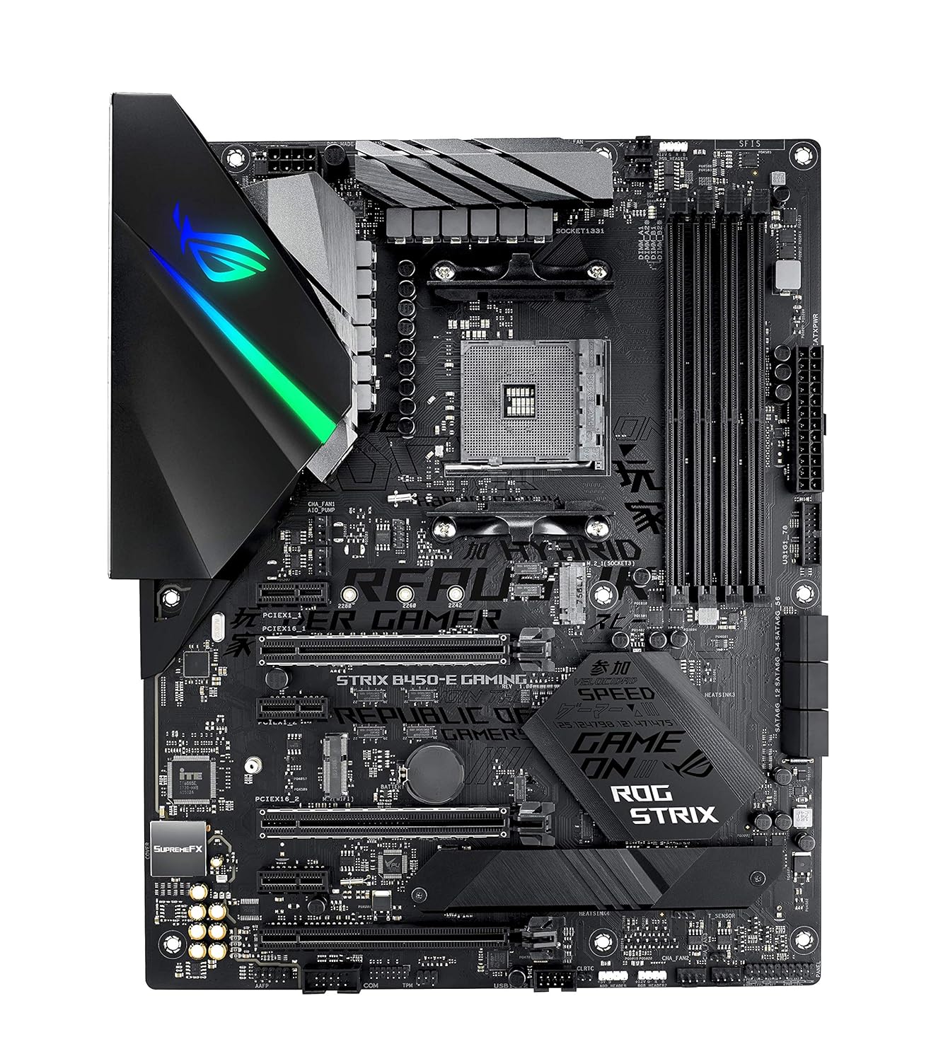Asus Rog Strix B450-E AMD B450 AM4 ATX is a DDR4-SDRAM Gaming Motherboard. It offers rich customization options with lighting synchronization as well as guided performance tuning and optimization via intuitive ROG software that makes it easy for experienced and first-time system builders alike to create a gaming system that really stands out. |