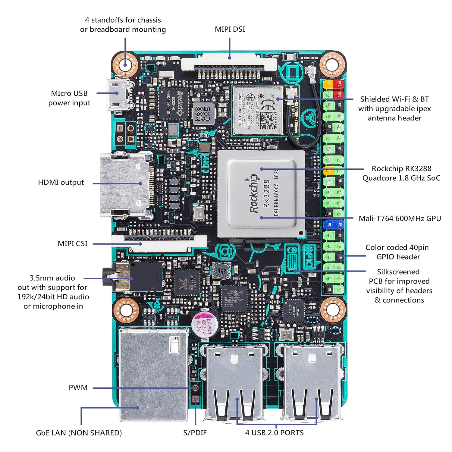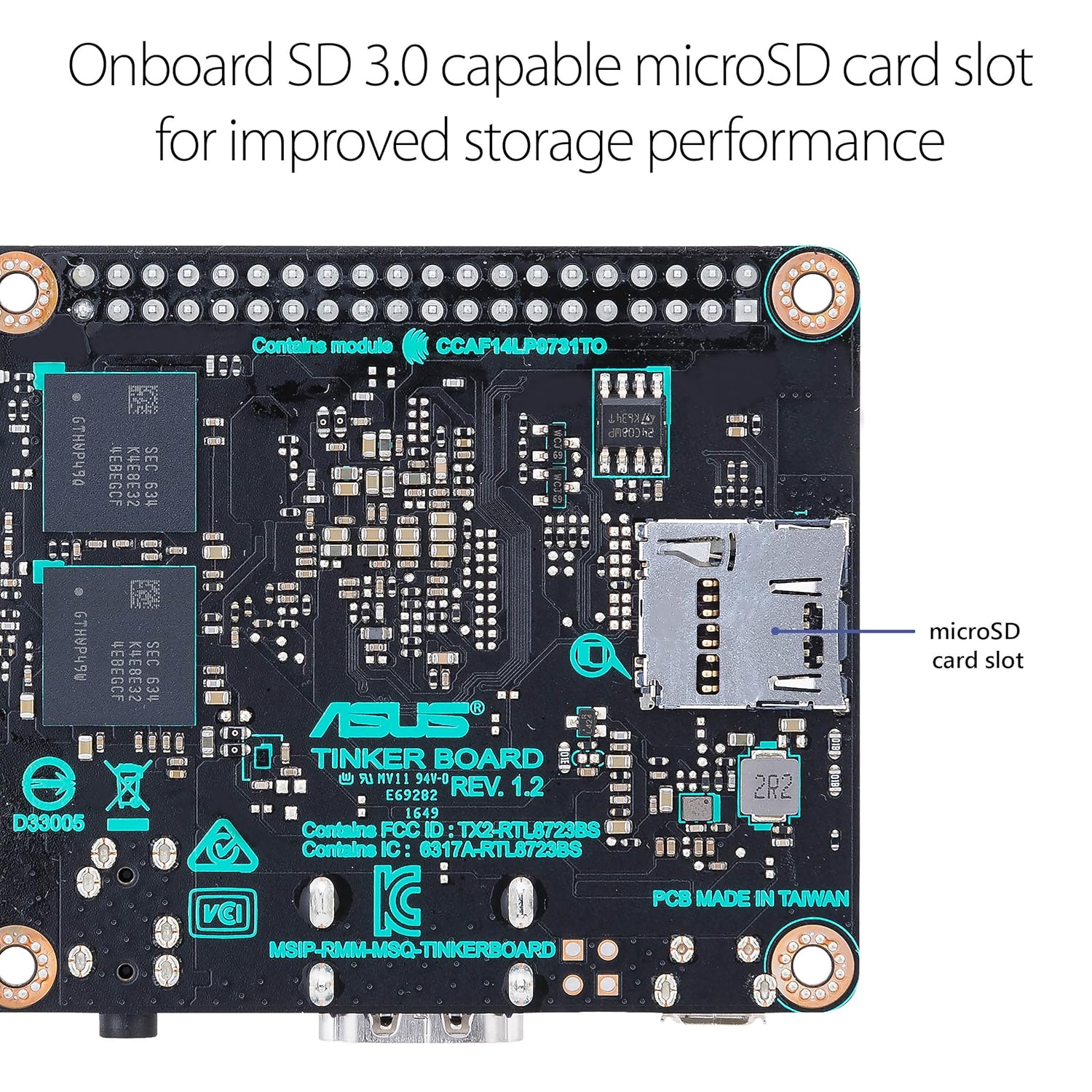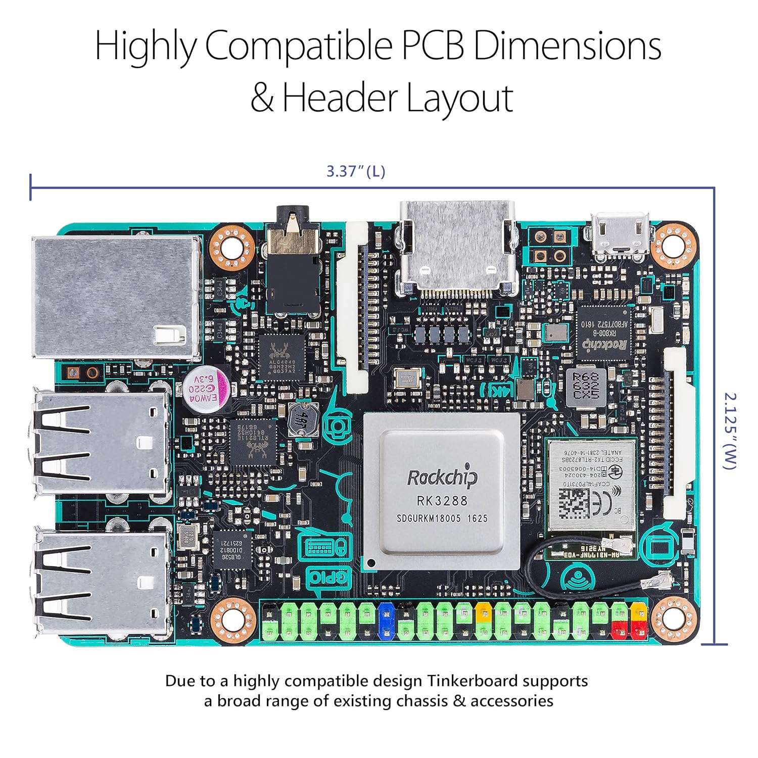 High performance Quad Core ARM SOC 1.8GHz with 2GB of RAM -The Tinker board features the Rock chip RK3288 Soc with Mali - T764 GPU and 2GB of Dual Channel DDR3 memory, Non shared GBit LAN, Shielded Wi-Fi with upgradable antenna support - Tinker board features a high speed non shared GBit LAN port for improved performance along with integrated shielded Wi-Fi for robust IOT and network connectivity. |