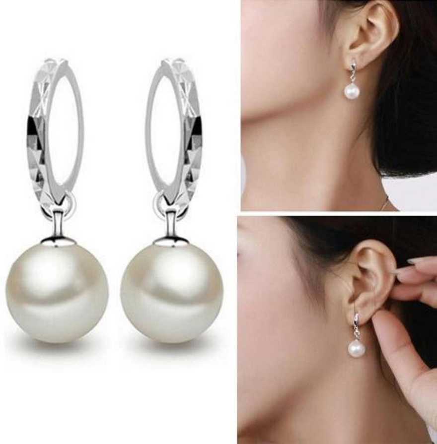 Attractive Sterling Silver Round Bali Pearl Drop Earrings for Women and Girl's |