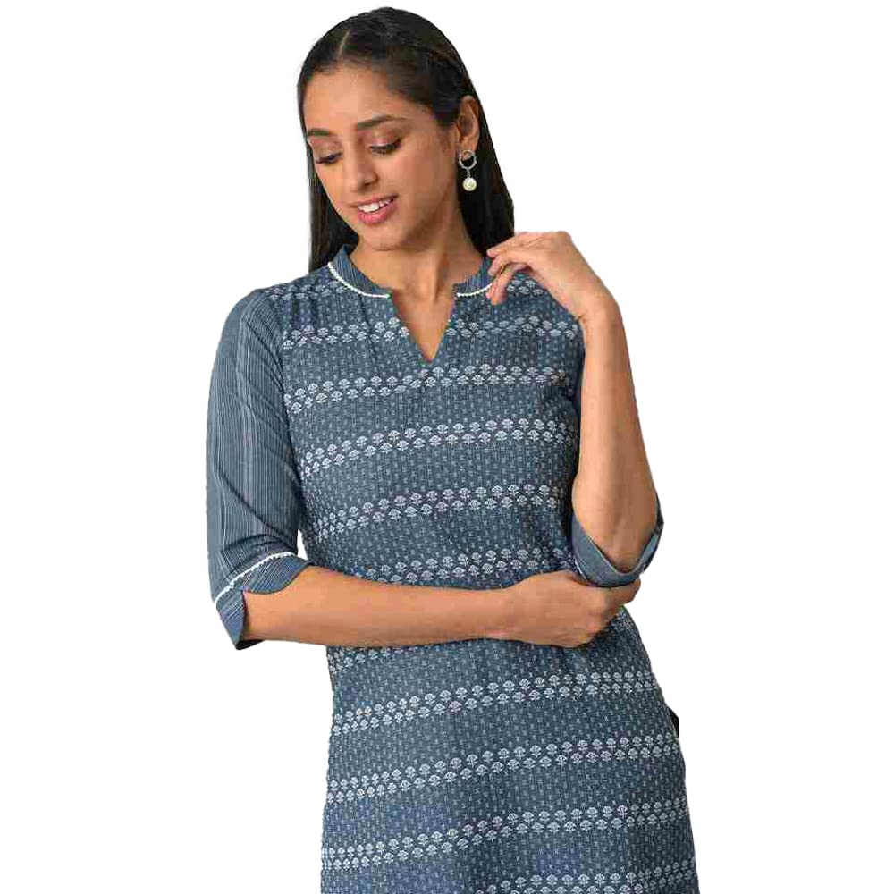 Generic Name- Blue Floral Printed Straight Kurta