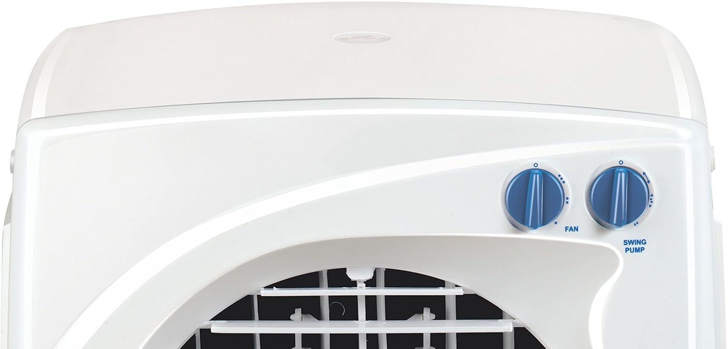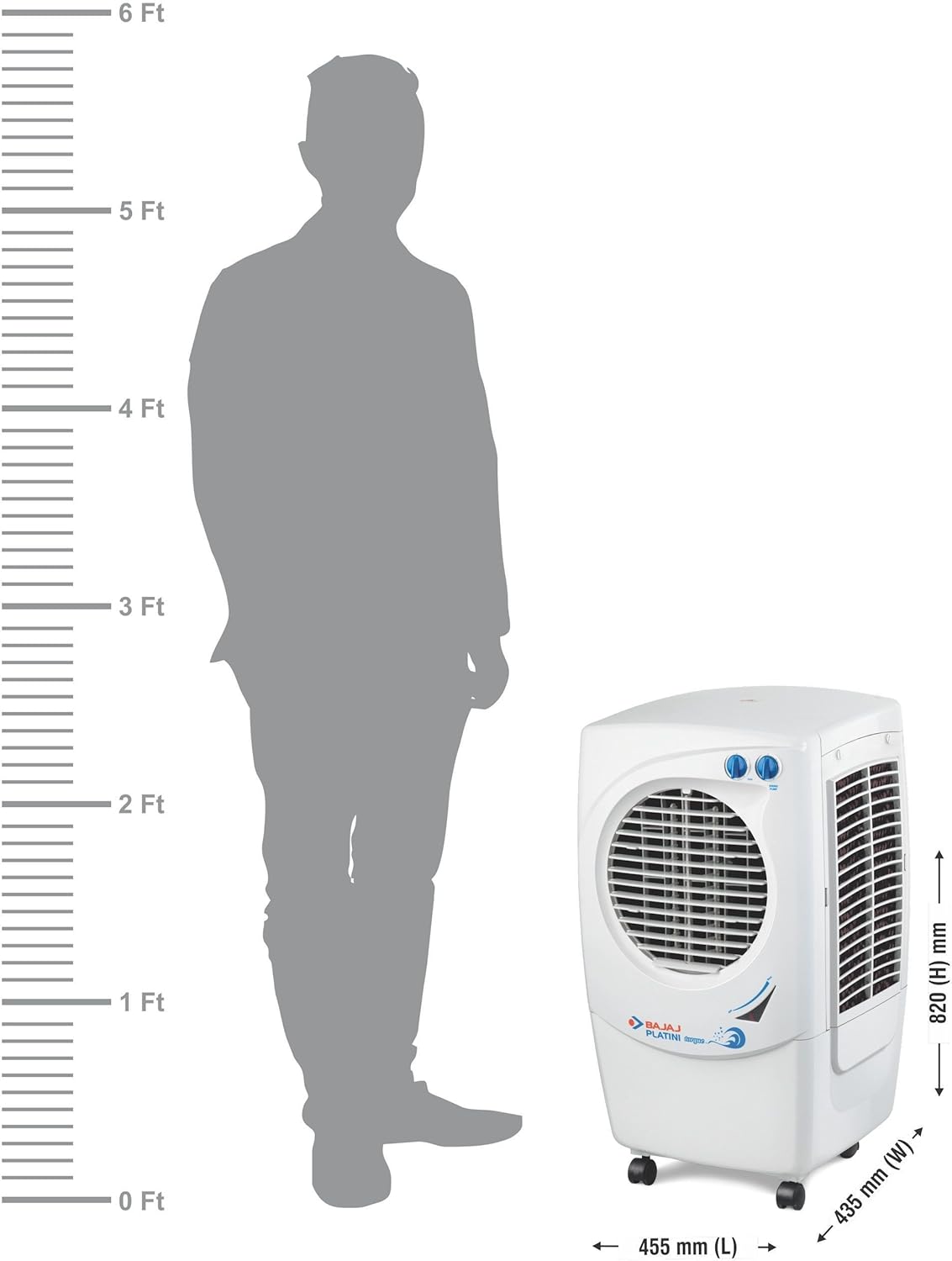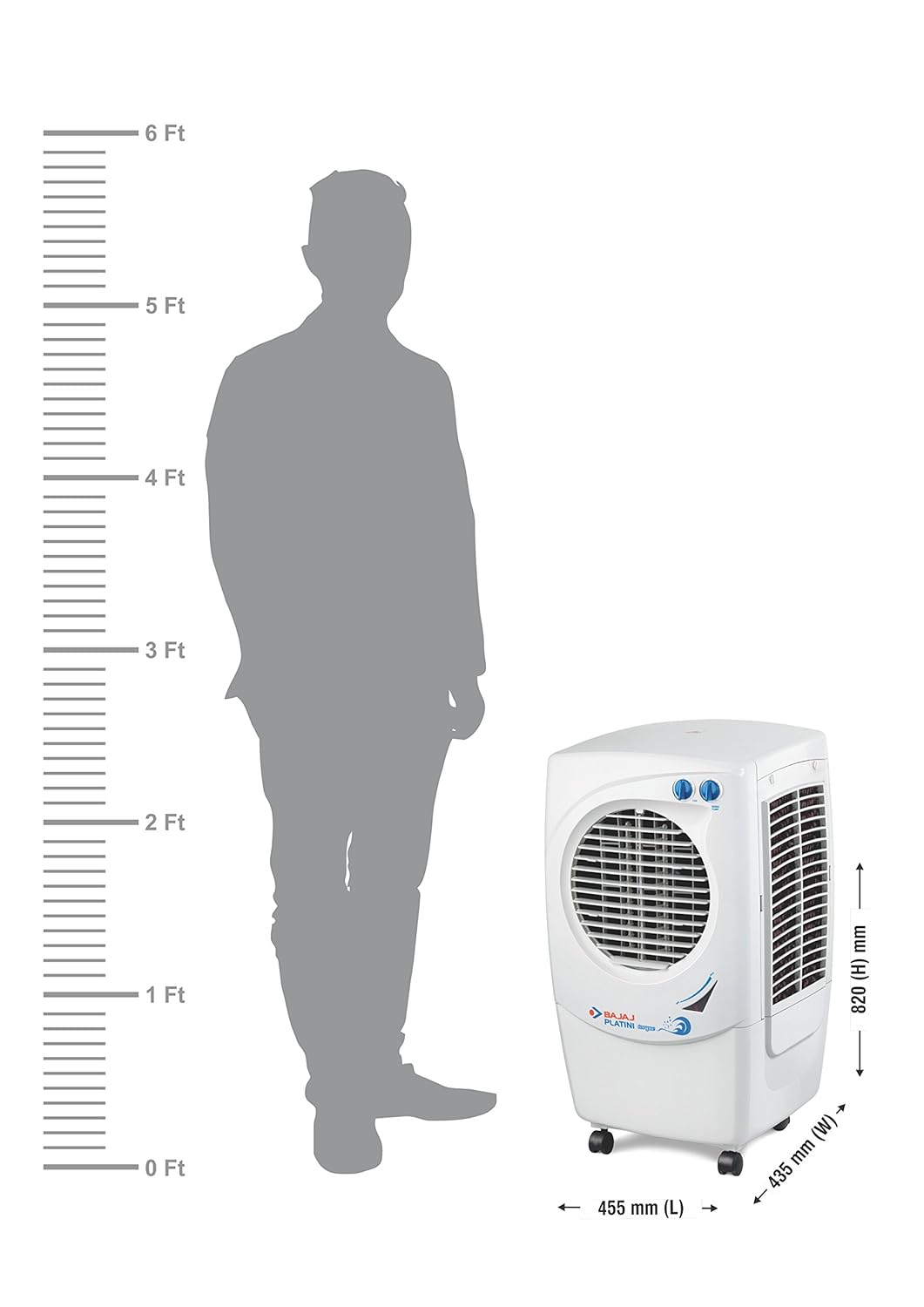 Bajaj PX 97 torqueis a durable, compact and portable room cooler that can be placed in offices as well in bedrooms for effective cooling, it is constructed from corrosion-free, engineered thermoplastic material that makes it a long lasting performer, it comes with castor wheels for mobility and works on powerful motor that generates less noise, this room cooler from Bajaj has 36 liters of water tank capacity, and 4-way air deflection system, its cooling capacity is 150 square feet and the air throw distance is 30feet it comes with a chill trap technology for effective distribution of cool air and has powerful air delivery of 1300 meter cube per hour. Product dimensions (LxBxH)mm:455x435x820 Rated Voltage :230 V Rated Frequency:50 Hz Rated Wattage:100. |