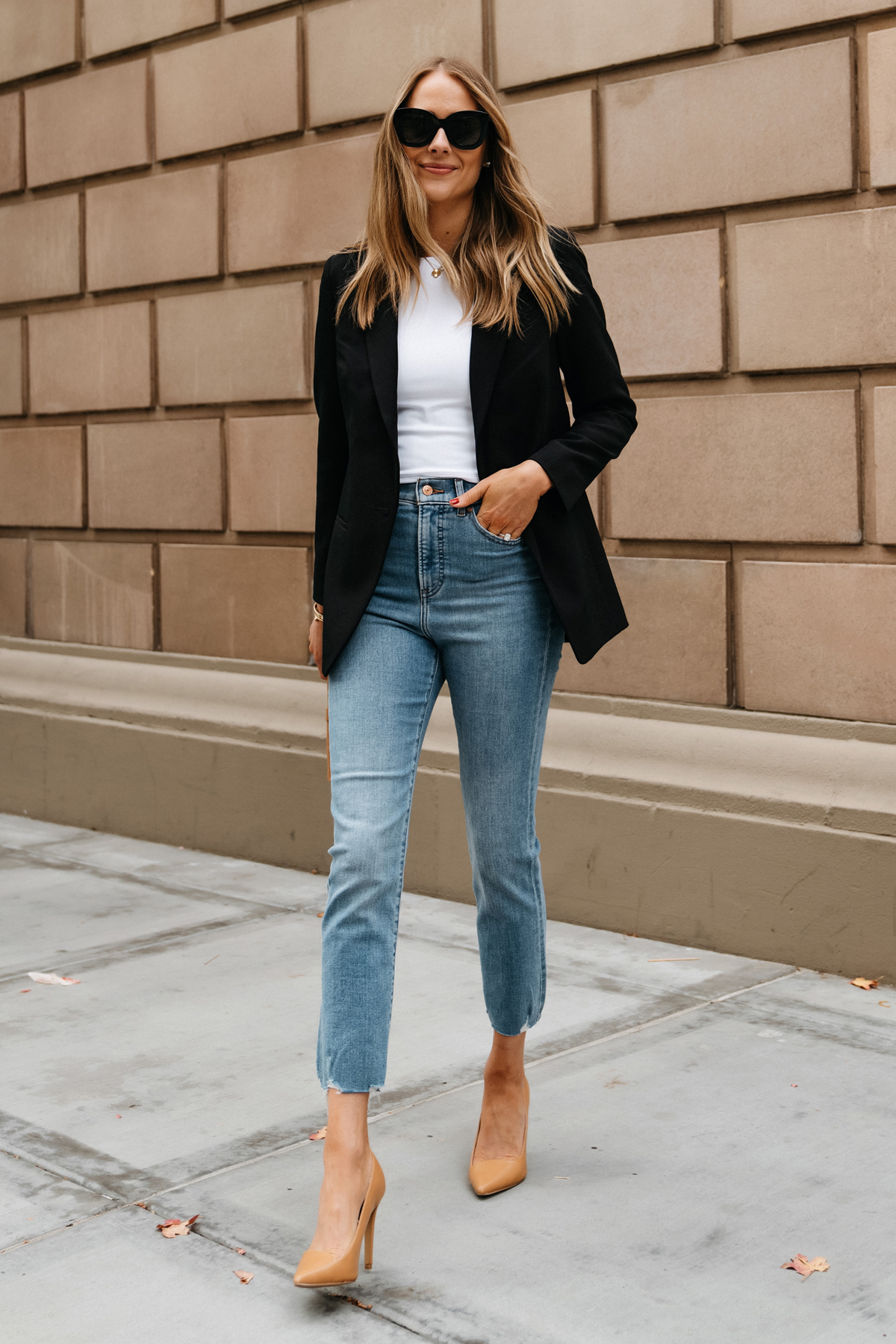 Wearing a striped blazer with a plain dress is another style for girls in 2022. This trendy style is recommended for girls, so we shared it here. You can make your decent look at night and at birthday parties when you wear a plain dress with a striped blazer. Also, a striped blazer could suit with printed shirts and denim jeans.