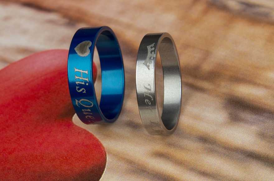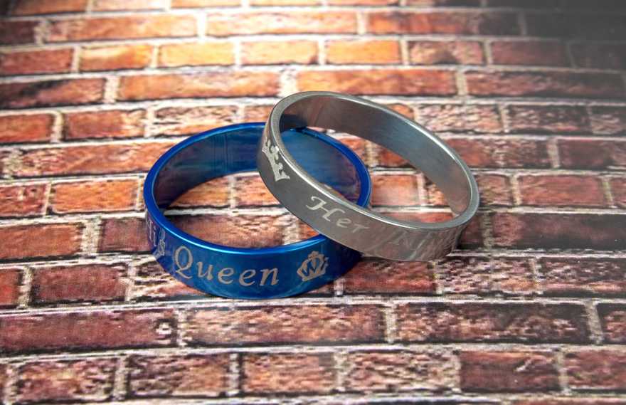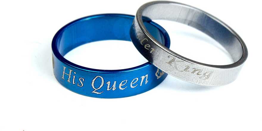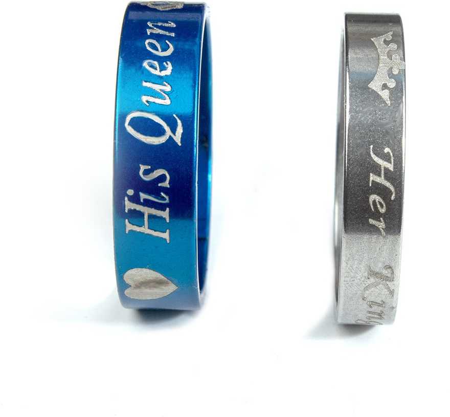 Blue & Silver Queen & King Couple Ring 2 PCS Stainless Steel Titanium Ring for Boys & Girls |