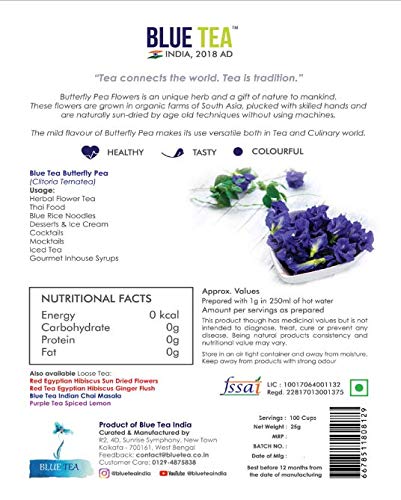 Blue Tea Butterfly Pea Flower | 100 Cups - 25 Grams|