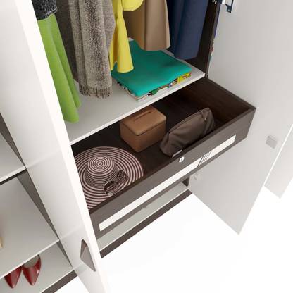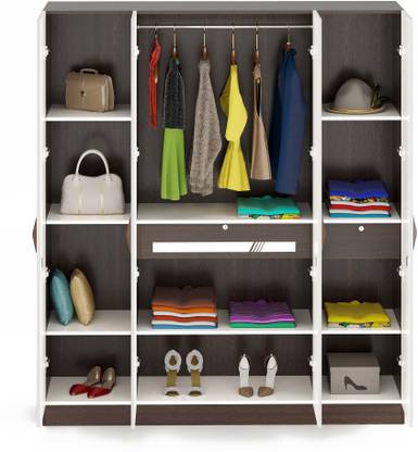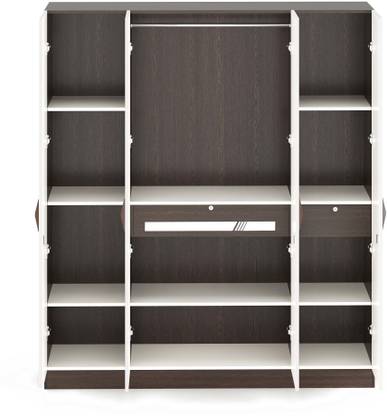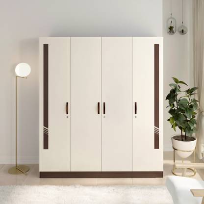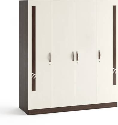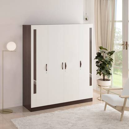 BLUEWUD Engineered Wood 4 Door Wardrobe (Finish Color - Wenge & White, Knock Down)