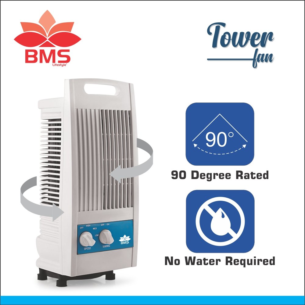 Tower fans offer a superior amount of air flow in an incredibly compact unit. These fans distribute air at a 90 degree angle |