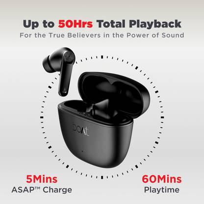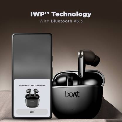 Are you ready to get into the groove that sways with Airdopes Atom 83 TWS earbuds. The 13mm drivers in the earbuds are there to deliver an immersive listening time. Our ENx Tech enabled quad mics help you to be heard crystal clear across voice calls. The addition of BEAST Mode makes the low latency experience a reality for your casual gaming and entertainment sessions. It comes equipped with Bluetooth v5.3 wireless technology so that you can enjoy all your sessions in a seamless manner. The IWP tech enabled TWS earbuds power on as soon as the case lid gets opened. Moreover, the ASAP Charge tech helps the earbuds to gather up to 60 min of playtime in only 5 minutes of charging. Airdopes Atom 83 provides a total playback time of up to 50HRS including up to 10HRS of playtime per earbud. With an IPX5 marked water resistance and lightweight build, the earbuds offer flexibility whether you are at the gym or traversing those far terrains. You can command playback, hands-free and activate voice assistant with ease via the instant response touch controls. Now, stay indulged in your playlists and enjoy a truly immersive auditory experience on Airdopes Atom 83.