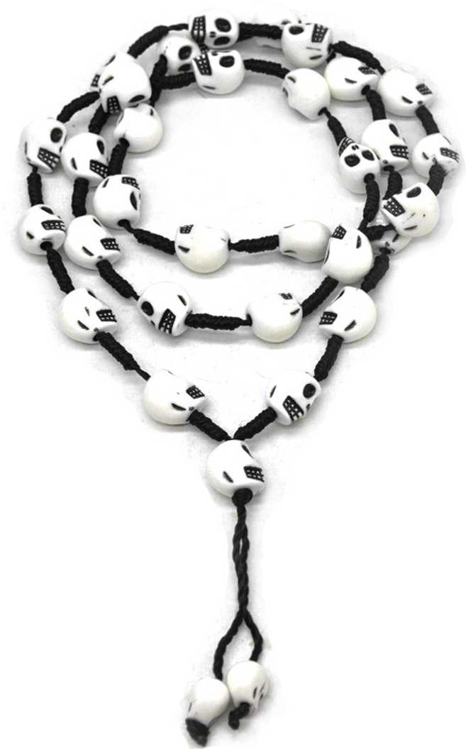 Bohemian Jewelry 15 mm White Head Skull Long Knotted Bead Mala |