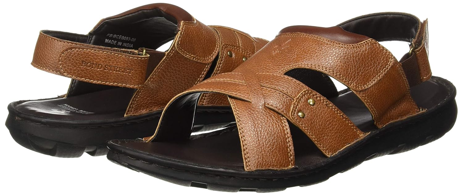 Classy in every sense, these tan sandals from Bond Street By Red Tape are created for urban men. Subtle in appeal, these sandals feature a textured upper with rivet embellishment and contrast coloured stitch detailing. Made of PU (polyurethane) for durability, these sandals have a Velcro closure for a snug fit. These sandals will go well with all types of outfits. |