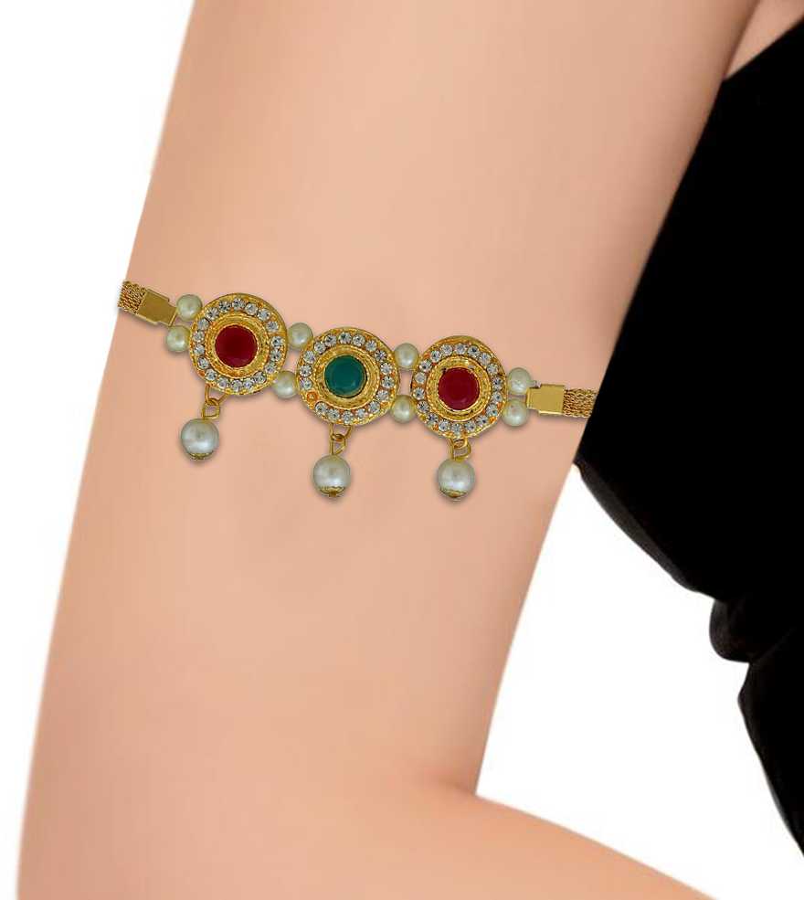Gold plating White A.D. Faux Ruby,Emerald, Pearls Traditional Armlet, Bajubandh Wedding Woman Bajuband Bridal Jewellery |